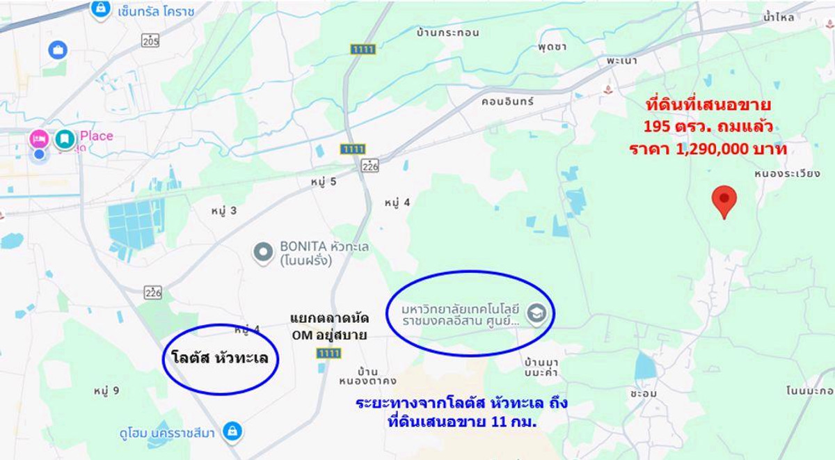 ขาย ที่ดิน บ้านโตนด ม.10 ต.หนองระเวียง อ.เมืองนครราชสีมา จัดสรรอู่ทองแลนด์ เนื้อที่ 195 ตรว ถมแล้วสูงกว่าถนน 1 ม. เจ้าของขายเอง ฟรีโอน :: จุดเด่น :: รูปที่ดินสี่เหลี่ยมคางหมู หน้ากว้าง 40 ม. ติดถนนคอนกรีต 5 ม.บริเวณใกล้เคียงเป็นบ้านอยู่อาศัยหนาแน่นปานกลาง กระจายตัวโดยรอบ การเข้า-ออก คมนาคมออกสู่ถนน 4 เลน ด้านถนนเพชรมาตุคลา และถนนหน้ามหาวิทยาลัยเทคโนโลยีราชมงคลอิสาน (สายบ้านโตนด-หนองไทร-พะเนา) ไฟฟ้า / ประปา ภูมิภาค / ท่อระบายน้ำ ราคาขายเป็นเงิน 1,100,000 บาท #ฟรีโอน ผู้ขายชำระค่าใช้จ่ายในการโอนทั้งหมด สนใจสอบถามเพิ่มเติม : คลิกเพื่อดูเบอร์โทรติดต่อ #เจ้าของขายเอง :: รายละเอียด :: - ขนาด 0 ไร่ 1 งาน 96ตร.วา ที่ดินเนื้อที่ 195 ตรว. ถมสูงกว่าถนน 1 ม.(4 ปี) สามารถสร้างบ้านขึ้นอาคารได้ทันที :: สถานที่ใกล้เคียง :: - โรงเรียนบ้านหนองระเวียง - โรงเรียนประชาสามัคคี - โรงเรียนบ้านพะเนา - โรงเรียนบ้านมาบมะค่า - วัดโตนด - วัดหนองระเวียง - วัดหนองไทร - วัดมะเริงใหญ่ - องค์การบริหารส่วนตำบลหนองระเวียง - โรงพยาบาลส่งเสริมสุขภาพตำบลโตนด - โรงพยาบาลส่งเสริมสุขภาพตำบลมะเริงน้อย - มหาวิทยาลัยเทคโนโลยีราชมงคลอีสาน ศูนย์การศึกษาหนองระเวียง พิกัด: http://maps.google.com/maps?q=14.967052,102.210356 ราคา: 1,100,000 บาท ตรว.ละ 5,6xx บาท สนใจติดต่อ: JACK คลิกเพื่อดูเบอร์โทรติดต่อ Line: jackleee