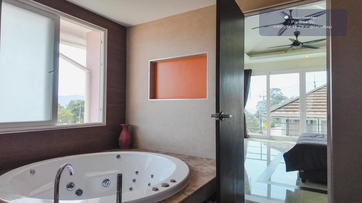 📏 ขนาดพื้นที่ 314 ตร.ม. รองรับได้สูงสุด 8 ท่าน 🔹 ราคาเช่ารายปี : 100,000 บาท/เดือน มัดจำ 2 เดือน + ค่าเช่าล่วงหน้า 1 เดือน จุดเด่นของบ้าน ✅ 4 ห้องนอน ทุกห้องมีเตียง 6 ฟุต และห้องน้ำในตัว ✅ 7 ห้องน้ำ (รวมถึงห้องน้ำโถงและห้องน้ำชั้นใต้ดิน) ✅ สระว่ายน้ำขนาดใหญ่ พร้อม Jacuzzi ✅ ลำโพงในห้องโถง & Outdoor BBQ Zone ✅ Alfresco Dining & Patio โซนปาร์ตี้สุดชิล ✅ ศาลาชั้นบน มองเห็นวิวทะเล ✅ สวนร่มรื่น เหมาะสำหรับการพักผ่อน 🐶 Pet-friendly! น้องหมา น้องแมวเข้าพักได้ 💡 สิ่งอำนวยความสะดวกครบครัน 📺 TV 2 เครื่อง (ห้องโถง & ห้องนอน Master) 📡 WiFi ฟรี 🎥 CCTV 8 ตัว ดูผ่าน TV ห้อง Master ❄️ แอร์ทั้งหลัง + พัดลม Auto ในห้องนอน 🛁 เครื่องทำน้ำอุ่น 👗 เครื่องซักผ้า & ตู้เซฟ 🍳 Island Kitchen & ครัวพร้อมอุปกรณ์ครบ 🚗 จอดรถได้ 3 คัน