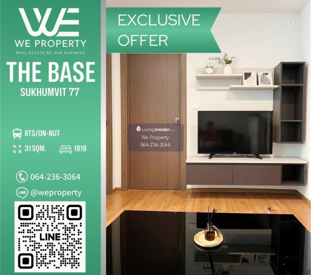 รหัสทรัพย์ (C3-JOB06) The Base Sukhumvit 77 (เดอะ เบส สุขุมวิท 77) 1 ห้องนอน 1 ห้องน้ำ ขนาด 30.60 ตร.ม. ชั้น 16 อาคาร B ทิศตะวันออก ห้องสวย เฟอร์นิเจอร์ครบ+เครื่องใช้ไฟฟ้า ราคาดี ✨✨ ขายเพียง 2,859,000 บ. เท่านั้น!!! ✅มีห้องให้เลือกหลากหลาย ✅รักษาผลประโยชน์ให้ลูกค้า ✅ดูแลยื่นสินเชื่อ กู้ผ่าน 100% ✅ดูแลจบครบทุกขั้นตอน ✅รีโนเวทตกแต่ง สนใจติดต่อ Mobile : คลิกเพื่อดูเบอร์โทรติดต่อ Link Line : https://lin.ee/NQaM9eh ID Line : @weproperty-on 📍กลุ่มสำหรับนักลงทุนซื้อคอนโดปล่อยเช่า Yield สูง https://line.me/ti/g2/Z6wVg0AO6_ve6FGBdQ7nuf_QvyXJ-yUKVUciHQ?utm_source=invitation&utm_medium=link_copy&utm_campaign=default