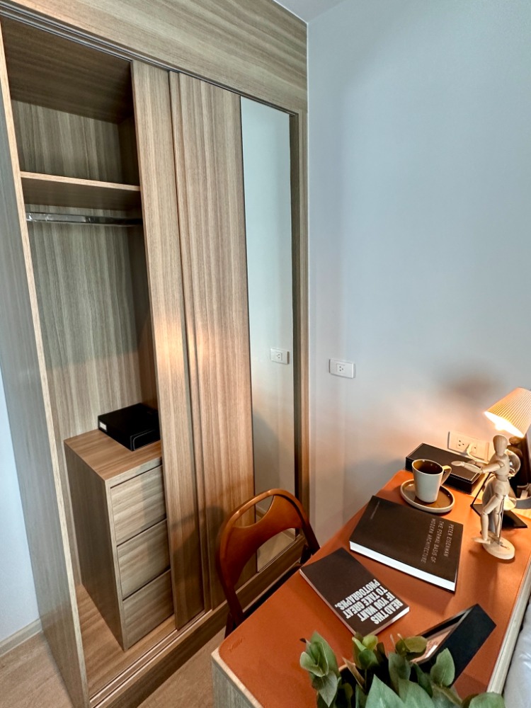 Altitude Unicorn Sathorn - Tha Phra (อัลติจูด ยูนิคอร์น สาทร-ท่าพระ) ห้อง 24 ตรม. ชั้น 19 ติดสถานีรถไฟฟ้า BTS ตลาดพลู จอดรถ 1 คัน - LG LED TV 43" = 2 เครื่อง - เครื่องปรับอากาศ Sharp = 2 เครื่อง - ตู้เย็น - เครื่องซักผ้าและอบผ้าในตัว - ไมโครเวฟ - เตาไฟฟ้า - เครื่องทำน้ำอุ่น - Co-working Space - Sky Lounge - Fitness - Swimming Pool - Theatre Room - Co-kitchen - E-Sport Room - EV Charger (AC) - Key Card Access - Finger & Face Scan - Digital Door Lock - Easy Pass สำหรับเข้าโครงการ และเข้าที่จอดรถ - CCTV - The Mall ท่าพระ - Icon Siam - Asiatique - ตลาดพลู - Lawson ด้านหน้าโครงการ Altitude Unicorn Sathorn - Tha Phra Room 24 sq m. Floor 19 Next to BTS Talad Phlu station, 1 car park - LG LED TV 43" = 2 units - Sharp air conditioners = 2 units - Refrigerator - Built-in washing machine and dryer - Microwave - Electric stove - Water heater - Co-working Space- Sky Lounge - Fitness - Swimming Pool - Theater Room - Co-kitchen - E-Sport Room - EV Charger (AC) - Key Card Access - Finger & Face Scan - Digital Door Lock - Easy Pass for entering the project And enter the car park - CCTV - The Mall Tha Phra - Icon Siam - Asiatique - Talat Phlu - Lawson in front of the project