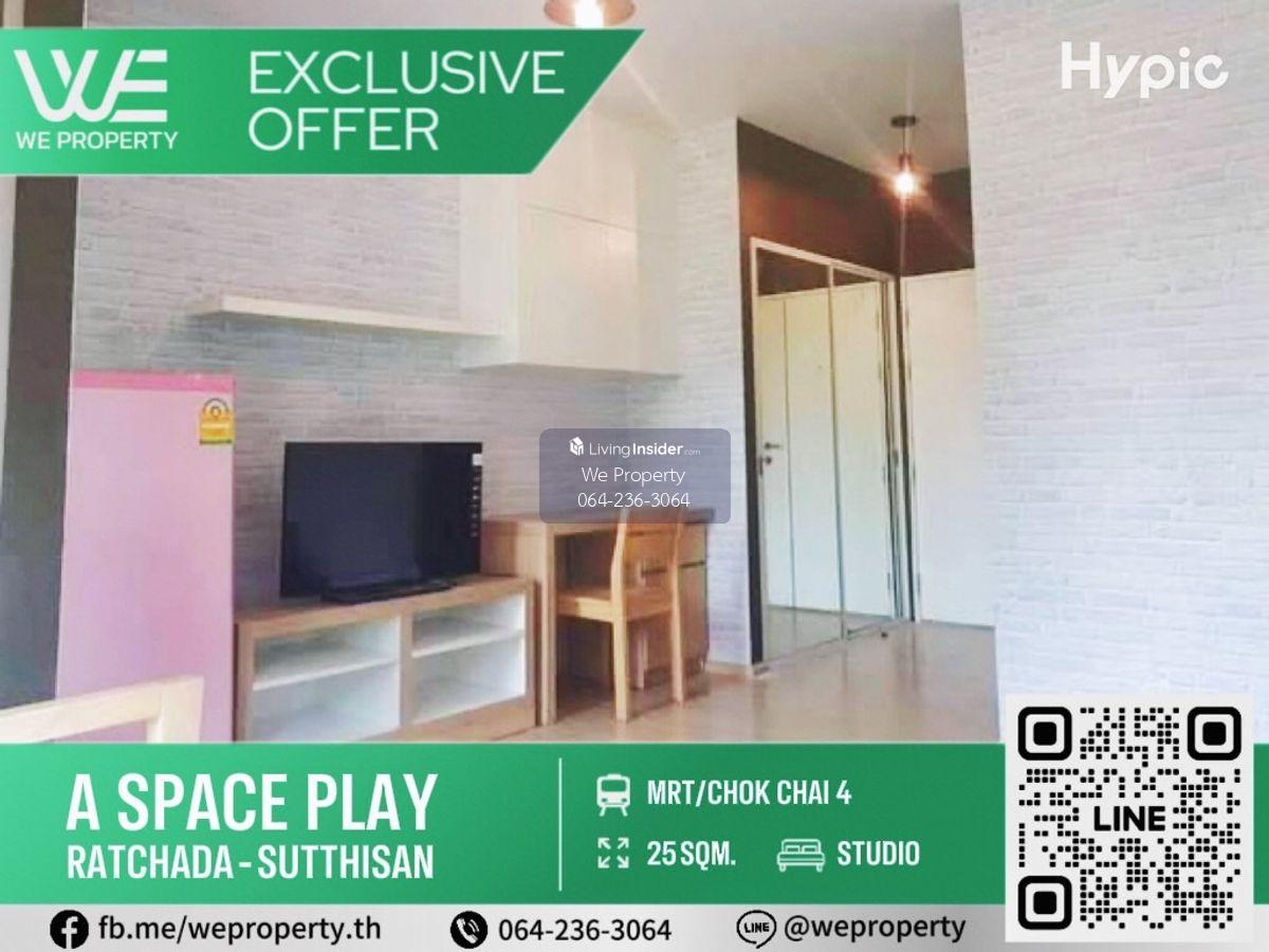 รหัสทรัพย์ (C3-JOB03) A Space Play Ratchada-Sutthisan (เอ สเปซ เพลย์ รัชดา-สุทธิสาร) สตูดิโอ 1 ห้องน้ำ ขนาด 25 ตร.ม. ชั้น 4 อาคาร A ห้องสวยสภาพดี วิวดีไม่ชนห้องใคร เฟอร์นิเจอร์ครบ+เครื่องใช้ไฟฟ้า✨✨ ขา