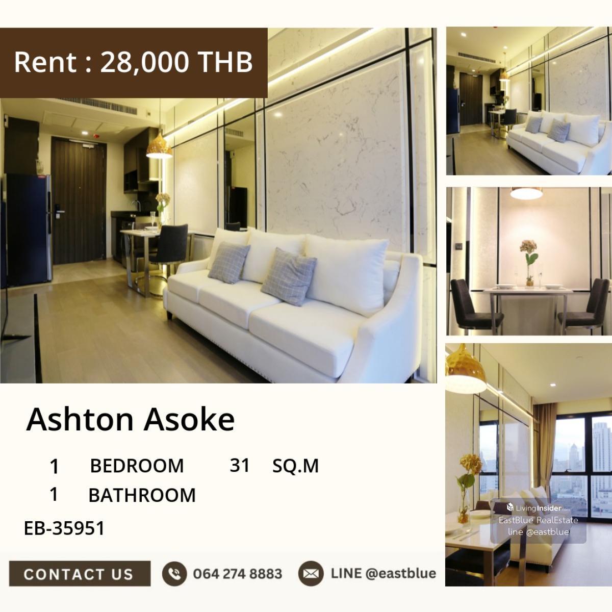 30/03/2026, ใจกลางอโศก! คอนโด Ashton Asoke 1นอน 31ตรม. พร้อมอยู่ ใกล้ BTS/MRT 28,000 บ./เดือน 0642748883