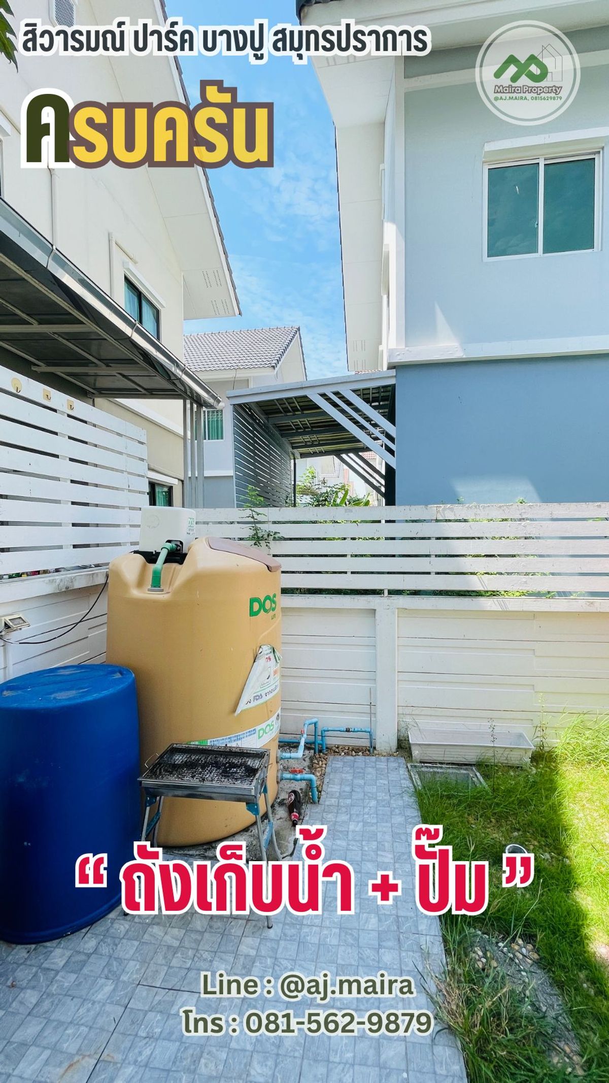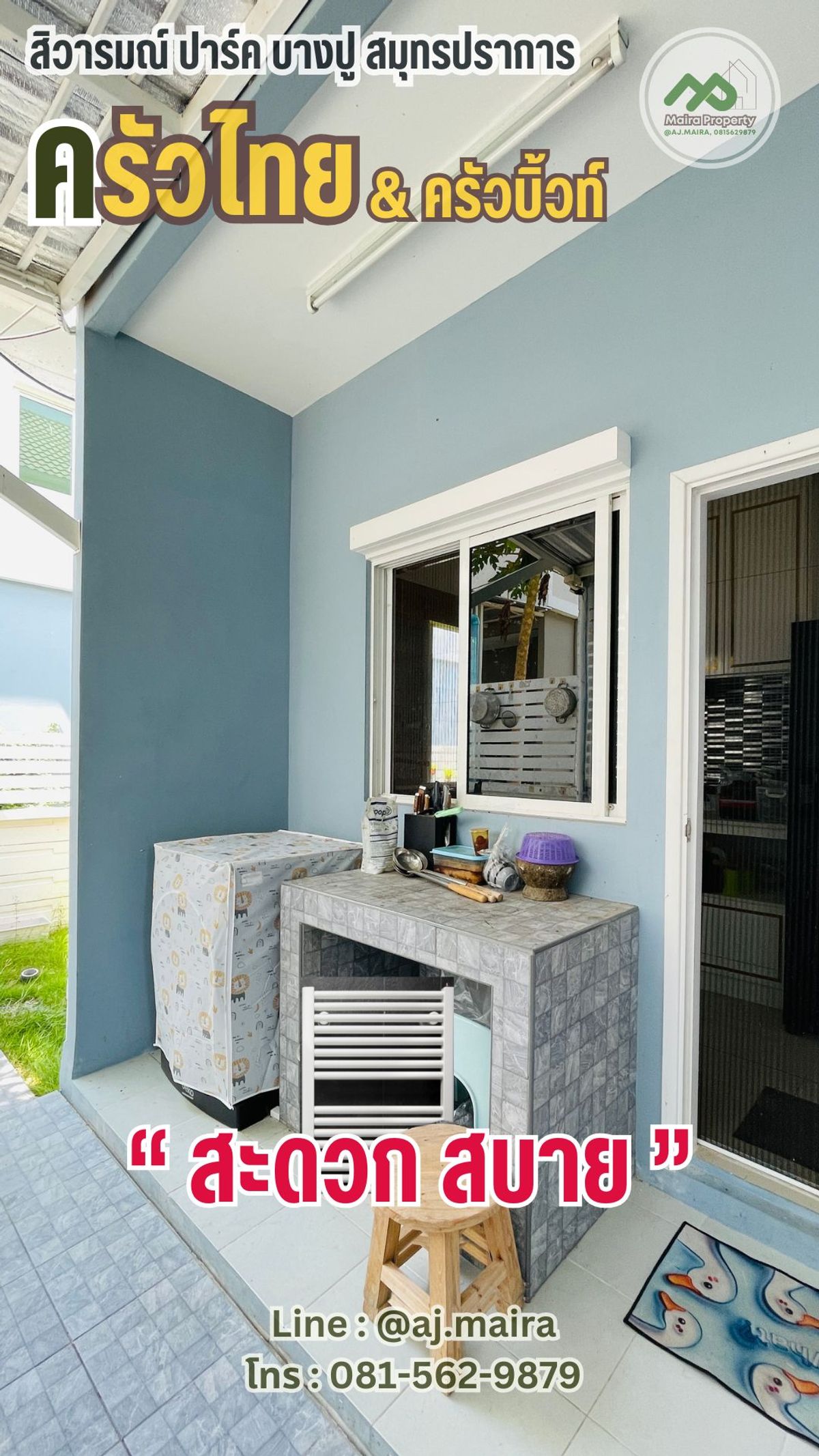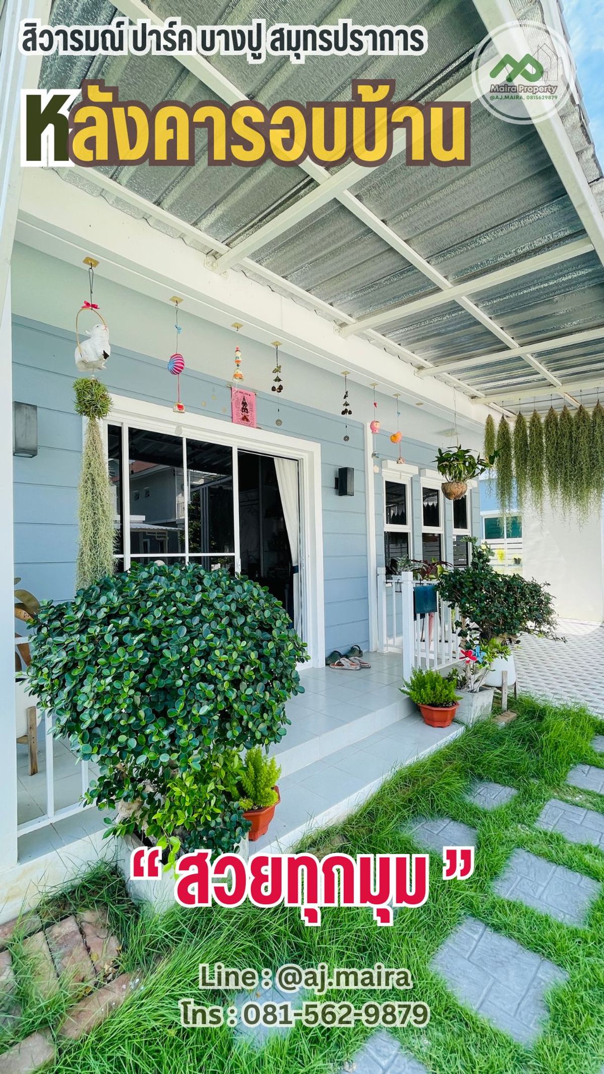 🏡 #หากคุณกำลังมองหาบ้านเดี่ยว รีโนเทหรู Luxury #ที่บางปู สมุทรปราการ ...#เหมือนตากอากาศตลอดปี .. แนะนำให้ดูหลังนี้เลยคะ! ... เพราะแค่หิ้วกระเป๋าก็พร้อมเข้าอยู่ทันที .... . 💚 บรรยากาศหรู อยู่สบายๆ ด้วยนวัตกรรมใหม่ เพื่อที่อยู่อาศัย ที่มากับบ้าน #รองรับครอบครัวใหญ่ ด้วยฟังก์ชัน 4 ห้องนอน 3 ห้องน้ำ บนพื้นที่ 69 ตรว พื้นที่ใช้สอยเกือบ 200 ตรม .... " คือว้าววววว มากก " . ✅ จัดเต็ม เฟอร์นิเจอร์ ในบ้านครบครัน ต่อเติม ตกแต่ง บิ้วท์อินอลังการ หรูหรา พร้อมสวนสวยจัดไว้ให้แล้วววววว ....พร้อมเข้าอยู่สุดๆ . 🏡 #ทำเลดีงาม หลังเดียวในโครงการ #ที่สะดวกมากที่สุดในโครงการ ... ก็ใกล้คลับเฮ้าส์แค่ไม่กี่ก้าว .... เหมือนคลับเฮ้าส์ส่วนตัว ทั้งฟิตเนส สนามพักผ่อน สระว่ายน้ำ สนามเด็กเล่น ครบครัน .... ก้าวออกจากบ้านก็มาใช้งานที่คลับเฮ้าส์ได้เลยคะ . ✳️ #ระบบรักษาความปลอดภัยของโครงการดีเลิศ เค้ามีเจ้าหน้าที่รักษาความปลอดภัยประจำซุ้มตลอดโครงการ พร้อมมีกล้อง CCTV กระจายทั่วหมู่บ้าน..... อากาศก็สะอาด O2 ฉ่ำปอดไปเลย ❗️... . ✳️ บ้านหลังนี้เป็นแบบ Brighton ทั้งโครงการมีไม่ถึง 10 หลัง ... #หลังนี้เป็นหลังมุม พื้นที่ขนาดใหญ่พิเศษ อีกด้วยน้า . พื้นที่ใช้สอยในบ้าน 189 ตร.ม. 4 ห้องนอน 3 ห้องน้ำ 2 ที่จอดรถ❗️ . . 💚 ภายในบ้านยังมีระบบ Smart Home ติดตั้งให้กับบ้านด้วย ได้แก่ ระบบกันขโมยแบบ Magnetic Sensor ที่ประตูชั้นล่างของบ้าน Motion Sensor จับความเคลื่อนไหวเพื่อเปิดไฟที่โถงบันได กล้อง CCTV ภายในบ้าน และ Smart Remote ให้เราสั่งเปิดปิดเครื่องใช้ไฟฟ้า ประตูหน้าบ้านได้ผ่านสมาร์ทโฟน . 💚 #ตกแต่งหรูหรากว่าบ้านตัวอย่าง 💚 . ✳️ สนใจ โทรหาพี่ไมร่าที่ คลิกเพื่อดูเบอร์โทรติดต่อ เลยนะ อย่าช้า ... ของสวยๆ ราคาน่ารัก น่ารัก ไม่ได้มีมาบ่อยๆ .... รู้ยัง ❗️ ✳️ หรือ Line : @aj.maira . #สถานที่ใกล้เคียง : - โรงพยาบาล : รพ.จุฬารัตน์ 5 รพ.บางบ่อ รพ.บางนา 2 รพ.รวมชัยประชารักษ์ รพ.จุฬารัตน์ 3 อินเตอร์ รพ.บางพลี รพ.จุฬารัตน์ 1 - โรงเรียน : รร.นวมินทราชินูทิศ สวนกุหลาบวิทยาลัย สมุทรปราการ ม.ราชภัฏธนบุรี สมุทรปราการ รร. บดินทรเดชา (สิงห์ สิงหเสนี) สมุทรปราการ รร.เคหะบางพลี : 8.8 กม. รร.วัดปานประสิท ธาราม รร.อ.ชุมชนบางบ่อ รร.วัดบางพลี ใหญ่กลาง รร.นานาชาติ ไทย-จีน เคหะบางพลี - ศูนย์การค้า : เยสบางพลี พลาซ่า เทสโก้ โลตัส บางปู บิ๊กซี บางพลี Makro บางพลี - ตลาดสด : คลองด่าน ตลาดหมู่บ้าน บางพลีพัฒนา ตลาดสดแสง ทองพลาซ่า ตลาดนัดแสงตะวัน ตลาดตำหรุ ตลาดสดเสริมสุข ตลาดนัดเรือบิน Flea Market ตลาดสด สุธาวี The American School Of Bangkok (ASB) Green Valley รร.นานาชาติ คอนคอร์เดียน . พิเศษ เดือน{thismonth}นี้ เรามีโปรพิเศษคะ . #เหมาะเป็นบ้านพักตากอากาศ #ซื้ออยู่เองก็ฟิน หรือ #ปล่อยเช่