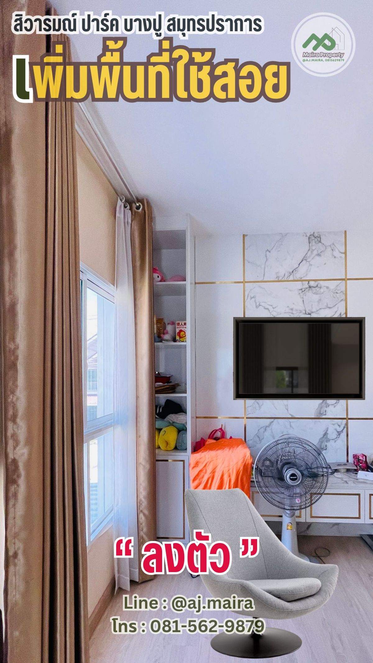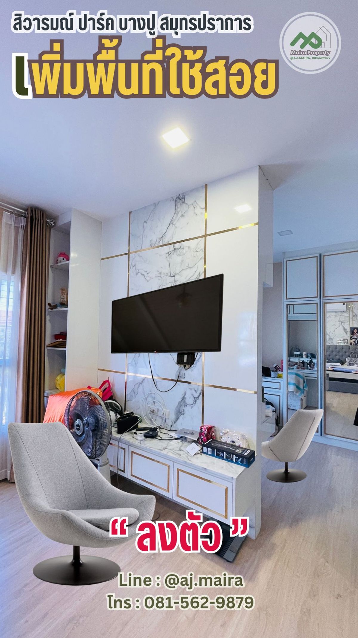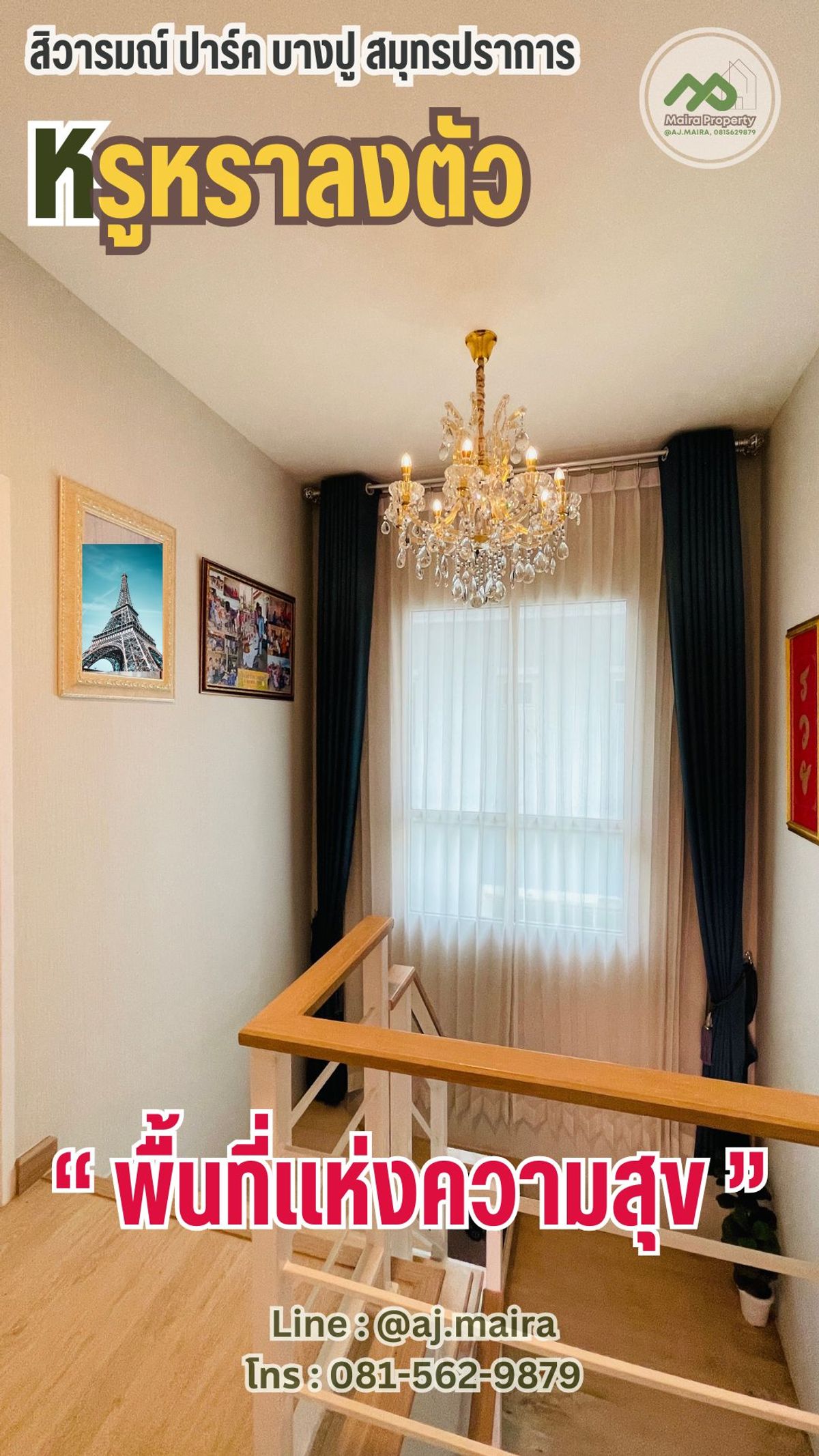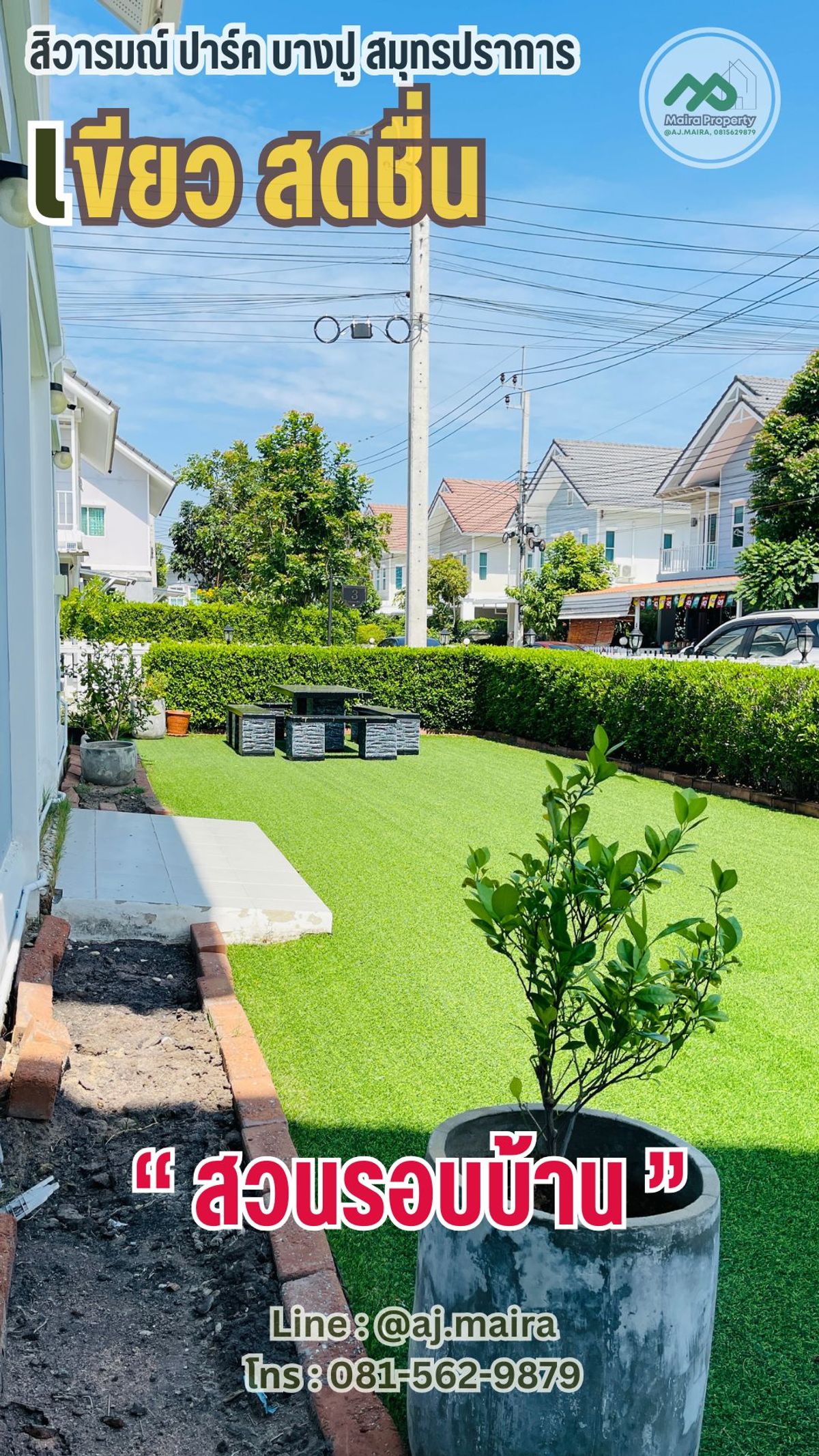 🏡 #หากคุณกำลังมองหาบ้านเดี่ยว รีโนเทหรู Luxury #ที่บางปู สมุทรปราการ ...#เหมือนตากอากาศตลอดปี .. แนะนำให้ดูหลังนี้เลยคะ! ... เพราะแค่หิ้วกระเป๋าก็พร้อมเข้าอยู่ทันที .... . 💚 บรรยากาศหรู อยู่สบายๆ ด้วยนวัตกรรมใหม่ เพื่อที่อยู่อาศัย ที่มากับบ้าน #รองรับครอบครัวใหญ่ ด้วยฟังก์ชัน 4 ห้องนอน 3 ห้องน้ำ บนพื้นที่ 69 ตรว พื้นที่ใช้สอยเกือบ 200 ตรม .... " คือว้าววววว มากก " . ✅ จัดเต็ม เฟอร์นิเจอร์ ในบ้านครบครัน ต่อเติม ตกแต่ง บิ้วท์อินอลังการ หรูหรา พร้อมสวนสวยจัดไว้ให้แล้วววววว ....พร้อมเข้าอยู่สุดๆ . 🏡 #ทำเลดีงาม หลังเดียวในโครงการ #ที่สะดวกมากที่สุดในโครงการ ... ก็ใกล้คลับเฮ้าส์แค่ไม่กี่ก้าว .... เหมือนคลับเฮ้าส์ส่วนตัว ทั้งฟิตเนส สนามพักผ่อน สระว่ายน้ำ สนามเด็กเล่น ครบครัน .... ก้าวออกจากบ้านก็มาใช้งานที่คลับเฮ้าส์ได้เลยคะ . ✳️ #ระบบรักษาความปลอดภัยของโครงการดีเลิศ เค้ามีเจ้าหน้าที่รักษาความปลอดภัยประจำซุ้มตลอดโครงการ พร้อมมีกล้อง CCTV กระจายทั่วหมู่บ้าน..... อากาศก็สะอาด O2 ฉ่ำปอดไปเลย ❗️... . ✳️ บ้านหลังนี้เป็นแบบ Brighton ทั้งโครงการมีไม่ถึง 10 หลัง ... #หลังนี้เป็นหลังมุม พื้นที่ขนาดใหญ่พิเศษ อีกด้วยน้า . พื้นที่ใช้สอยในบ้าน 189 ตร.ม. 4 ห้องนอน 3 ห้องน้ำ 2 ที่จอดรถ❗️ . . 💚 ภายในบ้านยังมีระบบ Smart Home ติดตั้งให้กับบ้านด้วย ได้แก่ ระบบกันขโมยแบบ Magnetic Sensor ที่ประตูชั้นล่างของบ้าน Motion Sensor จับความเคลื่อนไหวเพื่อเปิดไฟที่โถงบันได กล้อง CCTV ภายในบ้าน และ Smart Remote ให้เราสั่งเปิดปิดเครื่องใช้ไฟฟ้า ประตูหน้าบ้านได้ผ่านสมาร์ทโฟน . 💚 #ตกแต่งหรูหรากว่าบ้านตัวอย่าง 💚 . ✳️ สนใจ โทรหาพี่ไมร่าที่ คลิกเพื่อดูเบอร์โทรติดต่อ เลยนะ อย่าช้า ... ของสวยๆ ราคาน่ารัก น่ารัก ไม่ได้มีมาบ่อยๆ .... รู้ยัง ❗️ ✳️ หรือ Line : @aj.maira . #สถานที่ใกล้เคียง : - โรงพยาบาล : รพ.จุฬารัตน์ 5 รพ.บางบ่อ รพ.บางนา 2 รพ.รวมชัยประชารักษ์ รพ.จุฬารัตน์ 3 อินเตอร์ รพ.บางพลี รพ.จุฬารัตน์ 1 - โรงเรียน : รร.นวมินทราชินูทิศ สวนกุหลาบวิทยาลัย สมุทรปราการ ม.ราชภัฏธนบุรี สมุทรปราการ รร. บดินทรเดชา (สิงห์ สิงหเสนี) สมุทรปราการ รร.เคหะบางพลี : 8.8 กม. รร.วัดปานประสิท ธาราม รร.อ.ชุมชนบางบ่อ รร.วัดบางพลี ใหญ่กลาง รร.นานาชาติ ไทย-จีน เคหะบางพลี - ศูนย์การค้า : เยสบางพลี พลาซ่า เทสโก้ โลตัส บางปู บิ๊กซี บางพลี Makro บางพลี - ตลาดสด : คลองด่าน ตลาดหมู่บ้าน บางพลีพัฒนา ตลาดสดแสง ทองพลาซ่า ตลาดนัดแสงตะวัน ตลาดตำหรุ ตลาดสดเสริมสุข ตลาดนัดเรือบิน Flea Market ตลาดสด สุธาวี The American School Of Bangkok (ASB) Green Valley รร.นานาชาติ คอนคอร์เดียน . พิเศษ เดือน{thismonth}นี้ เรามีโปรพิเศษคะ . #เหมาะเป็นบ้านพักตากอากาศ #ซื้ออยู่เองก็ฟิน หรือ #ปล่อยเช่