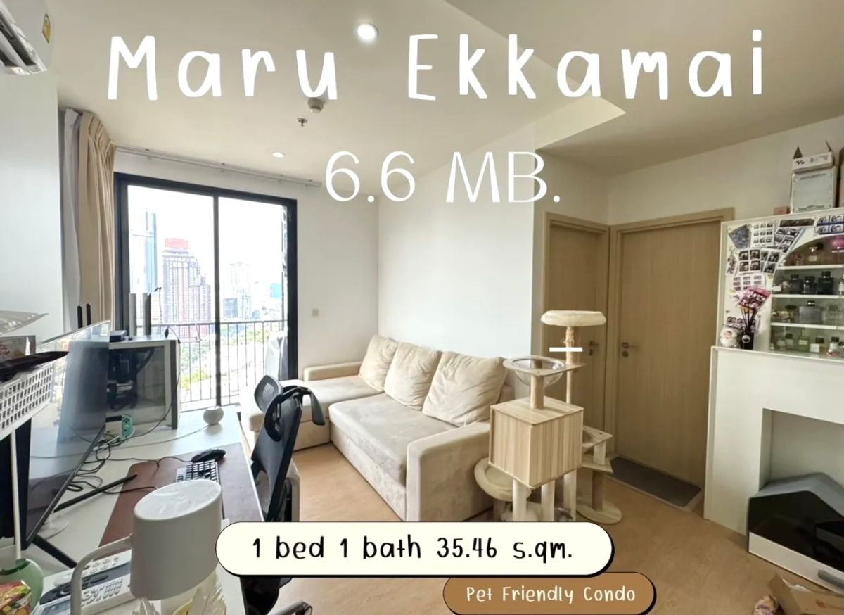 🚀 เจ้าของขายเอง | Maru Ekamai | 1 Bed Rare Unit | ชั้นสูง วิวสวย 180° 🌇 🐾 Pet Friendly | อยู่เอง ไม่เคยปล่อยเช่า | ดูแลดี พร้อมเข้าอยู่ทันที 📍 BTS เอกมัย เพียง 450 ม. (เดินเพียง 8 นาที) 🏠 Type: 1 Bed