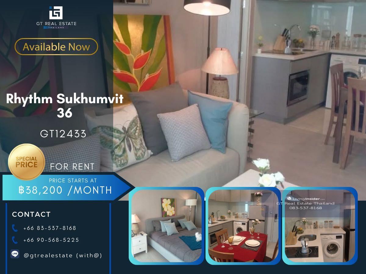 CODE : GT12433 Project : Rhythm Sukhumvit 36 Type : 2 ห้องนอน 2 ห้องน้ำ Size : 56 ตร.ม. Floor : 5+ อาคาร : - MRT/BTS : BTSทองหล่อ Rental Price : ราคาพิเศษเพียง 38,200 บาทต่อเดือนเท่านั้น!!! จากราคาปกต
