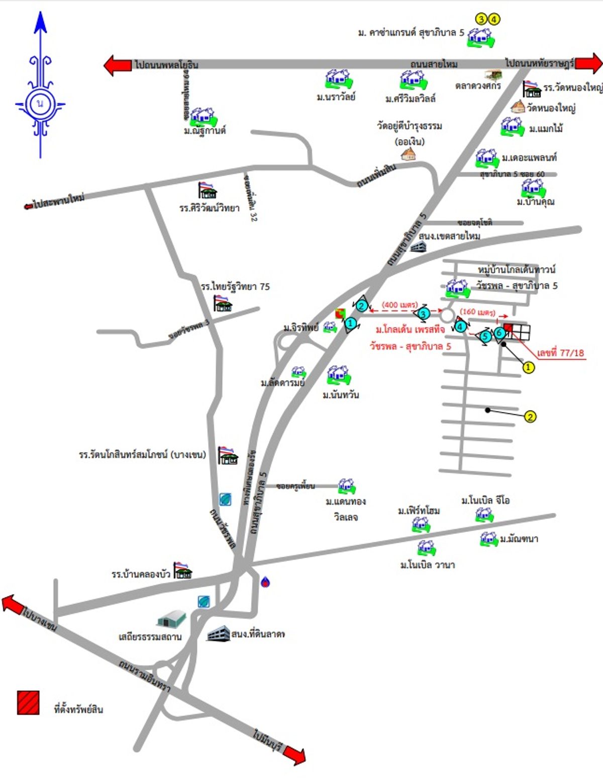 - โครงการติดถนนสุขาภิบาล 5 เดินทางสะดวก ใกล้ทางด่วนศรีรัช - สาธารณูปโภค ครบครัน สโมสร ฟิตเนส สระว่ายน้ำ สวนสาธารณะ สนามเด็กเล่น - ใกล้ Big C, สำนักงานเขตสายไหม, ตลาดออเงิน, โรงเรียนสารสาสน์วิเทศสายไหม