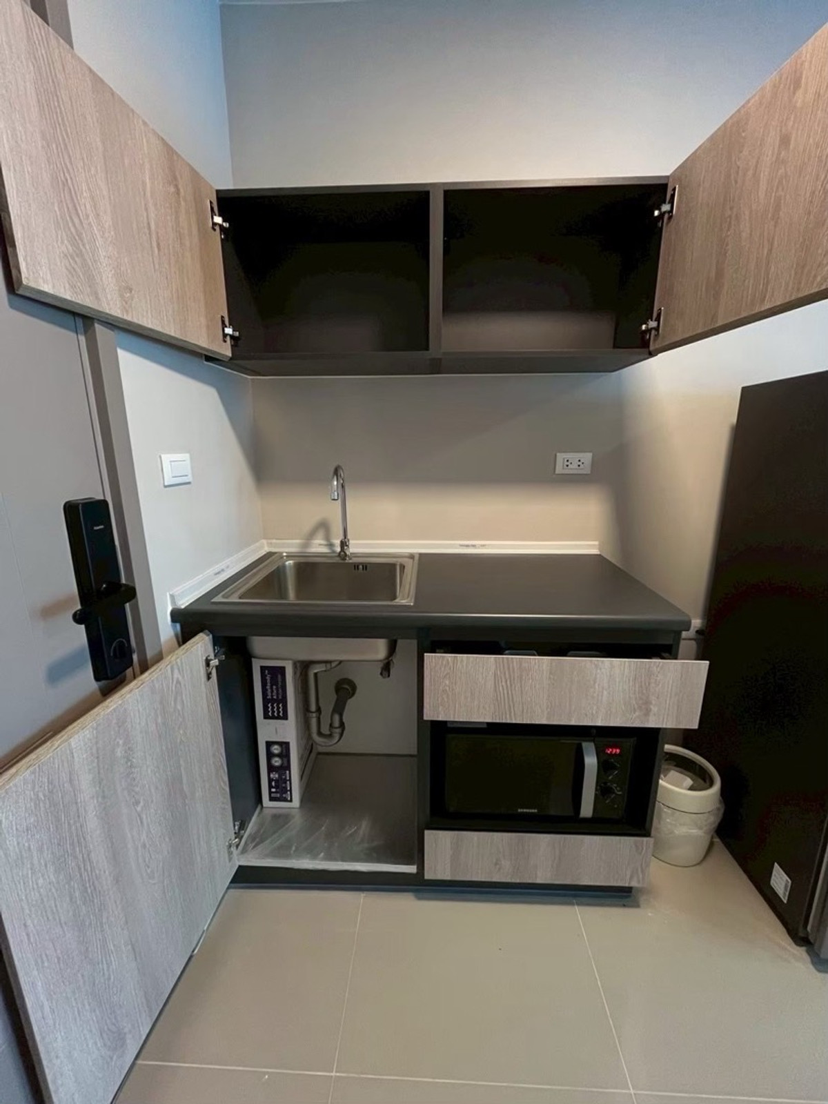 ให้เช่า dcondo campus hideaway ห้องใหม่ ชั้น4 ตึกC ขนาดพื้นที่ 27.96 ตร.ม. วิวทิศตะวันออกเฉียงใต้ - แอร์ - Smart TV 43 -ตู้เย็น -ไมโครเวฟ -โซฟา -โต๊ะรับแขก -ตู้เสื้อผ้า -ตู้รองเท้า -ฐานเตียง5ฟุต -จอดร
