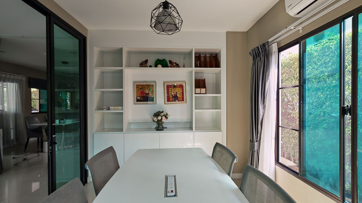 ขายบ้านเดี่ยวหลังมุม ตกแต่งครบ บ้านแข็งแรง ก่อสร้างโดยพฤกษา Real Estate สนใจ ติดต่อ คุณมุก โทร/Line คลิกเพื่อดูเบอร์โทรติดต่อ *เลี้ยงสัตว์ได้ รายละเอียดบ้าน อยู่ในโครงการภัสสร บางนา-ตราด บนถนนกิ่งแก้ว ใกล้ถนนใหญ่บางนา สนามบินสุวรรณภูมิ เมกะบางนา แม็คโครบางพลี โรงเรียนอินเตอร์ฯหลายแห่ง # พื้นที่ใช้สอย 222 ตารางเมตร เนื้อที่ 67 ตารางวา พร้อมสวน เป็นบ้านหัวมุมมีความเป็นส่วนตัว และใกล้สวนส่วนกลางของหมู่บ้าน # ชั้นล่าง มี ห้องรับแขก ห้องเอนกประสงค์ ห้องทานข้าวพร้อม pantry ห้องครัว ห้องน้ำ 1 ห้อง # ชั้น 2 มี 3 ห้องนอนพร้อมห้องน้ำในตัวทุกห้อง, ห้องพระ 1 ห้อง, ห้องกลางสำหรับพักผ่อนดูทีวี # ข้างบ้านชั้นล่าง มี ห้องคนงาน 1 ห้องพร้อมห้องน้ำ / จอดรถได้ 2 คัน สิ่งอำนวยความสะดวกในโครงการครบครัน อาทิ Club House 2 ชั้น, Co-working space, Free Wifi, สระว่ายน้ำพร้อมพื้นที่พักผ่อน, ฟิตเนส, สวนขนาดใหญ่, Jogging track, สนามเด็กเล่น, ถนนหลักในโครงการกว้าง 15 และ 12 เมตร ระบบการรักษาความปลอดภัยตลอด 24 ชม. สำหรับบ้านให้เช่าพร้อมเฟอร์นิเจอร์ตามรูป รายการเครื่องใช้ไฟฟ้า/เฟอร์นิเจอร์ # ชั้นล่าง โทรทัศน์ 1 เครื่อง / ตู้เย็น 1 เครื่อง/เครื่องซักผ้า 1 เครื่อง/เครื่องปรับอากาศ 2 เครื่อง # ชั้นบน เครื่องปรับอากาศ 4 เครื่อง/ เครื่องทำน้ำอุ่น 2 เครื่อง/ เครื่องทำน้ำร้อน 1 เครื่อง (สำหรับอ่างอาบน้ำ) # ผ้าม่าน มุ้งลวด/ครัวตามรูป/ตู้เสื้อผ้าบิวด์อินตามรูป/เตียงครบ 3 ห้อง (เตียง 6 ฟุต 1 เตียงและเตียง 5 ฟุต 2 เตียง) / โซฟา 2 ชุด (ชั้นบนและชั้นล่าง)/ โต๊ะทำงานขนาดใหญ่พร้อมเก้าอี้ทำงาน 4 ตัว) / โต๊ะคอมพิวเตอร์ปรับระดับไฟฟ้า 2 ชุดพร้อมเก้าอี้/ กล้องวงจรปิดทั่วบ้าน 9 จุด / ประตูรั้วรีโมทไฟฟ้า / smart home ปิดเปิดไฟแอร์ เครื่องใช้ไฟฟ้า ค่าโอน - ออกคนละครึ่งกับผู้ซื้อ ค่าภาษีเงินได้ และอากรแสตมป์ - ผู้ขายออก