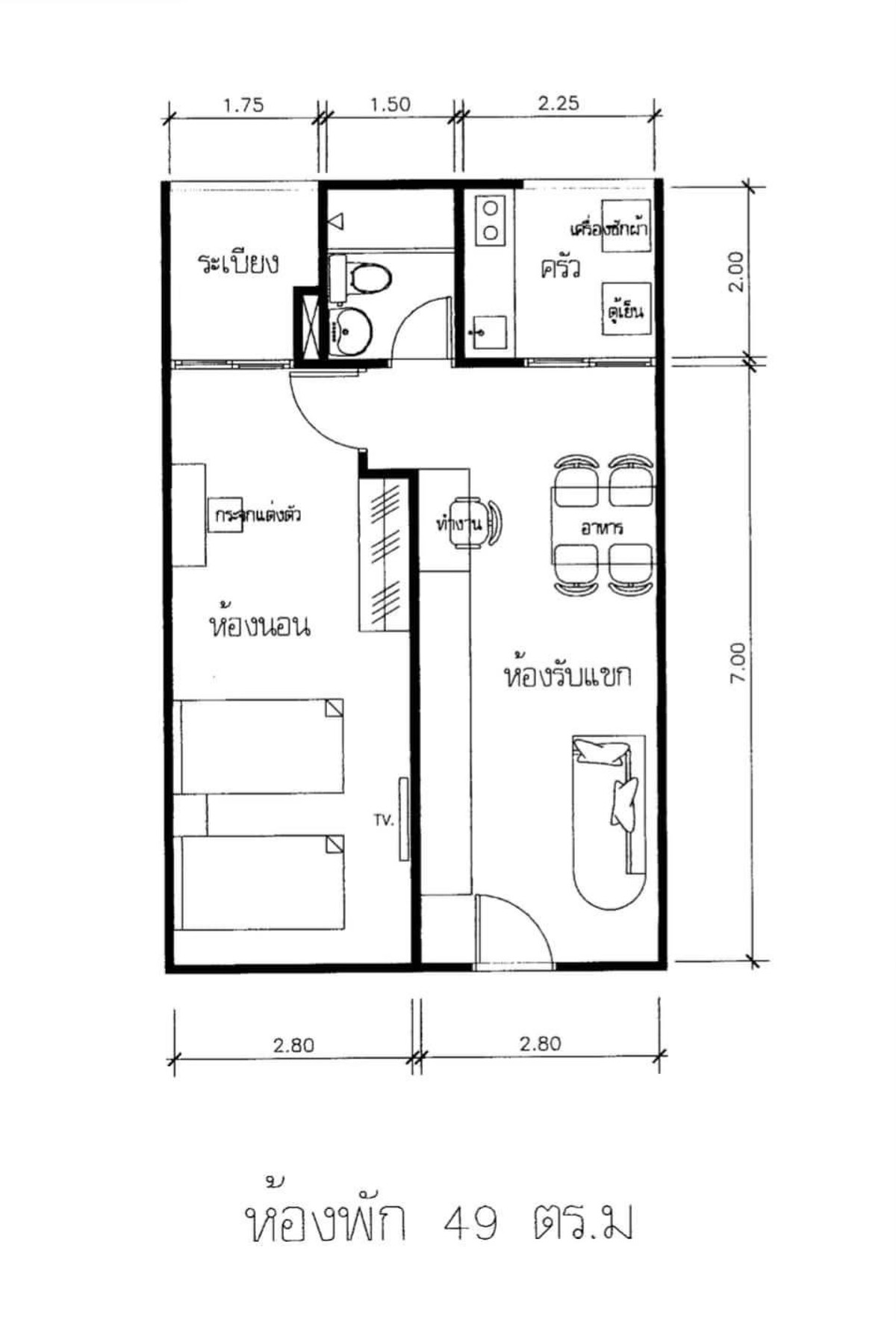 พื้นที่ใช้สอย 49.50 ตร.ม.