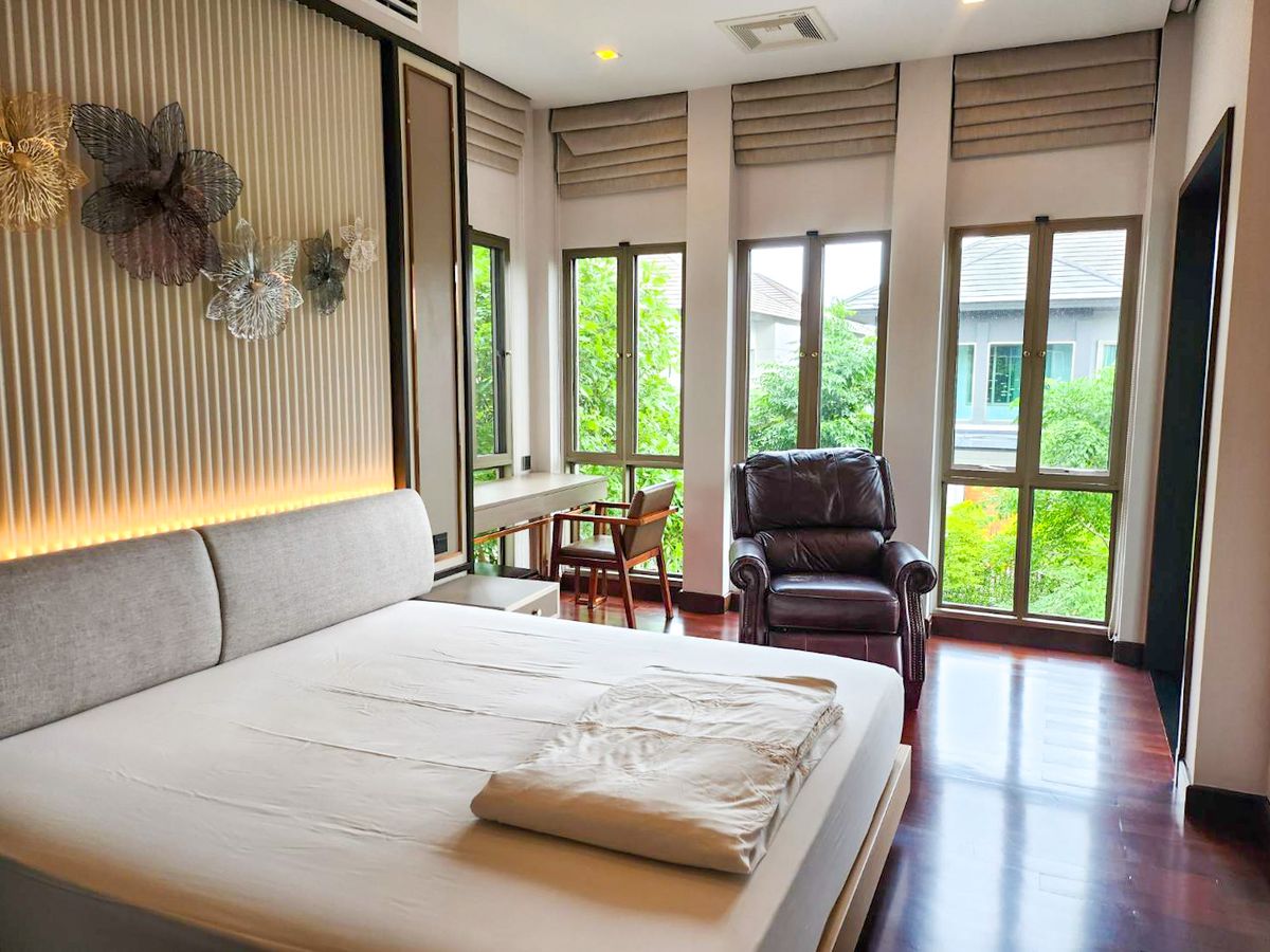=ภาษาไทยด้านล่าง= For rent, single house, Grand Bangkok Boulevard Srinakarin, size 390 sq.m., 4 bedrooms, with glass elevator, built-in furniture, ready to move in Location: next to the entrance of the Yellow Line BTS station, Srinakarin station, on Srinakarin Road, Nong Bon Subdistrict, Prawet District Details RBN-043 Luxury single house, Grand Bangkok Boulevard Srinakarin - 2-storey luxury mansion, Moroccan style, beautifully decorated, ready to move in - Land size 82 sq.w. - Usable area 390 sq.m. - 4 bedrooms / 4 bathrooms - 1 maid's room + bathroom - 1 living room / 1 dining room - 1 kitchen - 3 parking Highlights of the house - 1 glass elevator - 2 refrigerators (1 for personal use / 1 for maid) - 1 large shoe cabinet More than 50 pairs can be stored - Gardener and fish pond caretaker Project facilities - Clubhouse / Fitness - Swimming pool - Public park - 24-hour Triple Premium Security - Easy Pass entry and exit / Double Gate system Nearby places - Seacon Square - Paradise Park - Mega Bangna - Central Bangna - Suvarnabhumi International Airport - Suan Luang Rama IX - Samitivej Srinakarin Hospital - Thai Nakarin Hospital - Sikarin Hospital - Thai-Singapore International School - Bangkok International Academic School - Berkeley International School - Concordian International School - Charter International School - Montessori Academy Bangkok International School ---------- Rent 150,000 baht / month (1 year lease / 2 months deposit + 1 month advance) ---------- Make an appointment to see the house ☎️ คลิกเพื่อดูเบอร์โทรติดต่อ Tak Line: https://lin.ee/PgJChcF Line id: @perfectmatch (with @ in front) #Bangna house for rent #Srinakarin house for rent #Single house for rent #Ready to move in house for rent #Bangna single house for rent #Grand Bangkok Boulevard Srinakarin #GrandBangkokBoulevardSrinakarin #Near international school #ConcordianInternationalSchool #Ready to move in house #houseforrent #housebangna ================ ให้เช่า บ้านเดี่ยว แกรนด์ บางกอก บูเลอวาร์ด ศรีนครินทร์ ขนาด 390ตรม. 4 ห้องนอน มีลิฟท์แก้ว ตกแต่งเฟอร์บิ้วอิน พร้อมเข้าอยู่ ที่ตั้ง: ติดทางขี้นสถานีรถไฟฟ้าสายสีเหลือง สถานีศรีนครินทร์ ติดถนนศรีนครินทร์ แขวงหนองบอน เขตประเวศ รายละเอียด RBN-043 บ้านเดี่ยวหรู แกรนด์ บางกอก บูเลอวาร์ด ศรีนครินทร์ - คฤหาสน์หรู 2 ชั้น สไตล์โมร๊อคโค ตกแต่งสวยพร้อมเข้าอยู่ - ขนาดที่ดิน 82 ตรว. - พื้นที่ใช้สอย 390 ตรม. - 4 ห้องนอน / 4 ห้องน้ำ - 1 ห้องแม่บ้าน + ห้องน้ำ - 1 ห้องรับแขก / 1 ห้องประทานอาหาร - 1 ครัว - 3 ที่จอดรถ จุดเด่นของบ้าน - 1 ลิฟท์แก้ว - 2 ตู้เย็น ( 1 ใช้ส่วนตัว / 1 สำหรับแม่บ้าน) - 1 ตู้เก็บรองเท้าขนาดใหญ่ เก็บได้มากกว่า 50 คู่ - คนมีดูแลสวน และ ดูแลบ่อปลา สิ่งอำนวยความสะดวกในโครงการ - คลับเฮ้าส์ / ฟิตเนส - สระว่ายน้ำ - สวนสาธารณะ - Triple Premium Security ตลอด 24 ชม. - เข้า-ออกด้วยระบบ Easy Pass / ระบบประตู 2 ชั้น Double Gate สถานที่ใกล้เคียง - Seacon Square - Paradise Park - Mega Bangna - Central Bangna - Suvarnabhumi International Airport - สวนหลวง ร.9 - รพ.สมิติเวช ศรีนครินทร์ - รพ.ไทยนครินทร์ - รพ.ศิครินทร์ - ร.ร.นานาชาติไทย-สิงคโปร์ - Bangkok International Academic School - Berkeley International School - Concordian International School - Charter International School - Montessori Academy Bangkok International School ---------- ค่าเช่า 150,000 บาท/เดือน (สัญญาเช่า 1 ปี / ประกันของ 2 เดือน + ล่วงหน้า 1 เดือน) ---------- นัดชมบ้าน ☎️ คลิกเพื่อดูเบอร์โทรติดต่อ ตั๊ก Line: https://lin.ee/PgJChcF Line id: @perfectmatch (มี @ ข้างหน้าด้วยนะคะ) #บ้านเช่าบางนา #บ้านเช่าศรีนครินทร์ #บ้านเดี่ยวให้เช่า #บ้านเช่าพร้อมอยู่ #เช่าบ้านเดี่ยวบางนา #แกรนด์บางกอกบูเลอวาร์ดศรีนครินทร์ #GrandBangkokBoulevardSrinakarin #ใกล้โรงเรียนนานาชาติ #ConcordianInternationalSchool #บ้านพร้อมอยู่ #houseforrent #housebangna