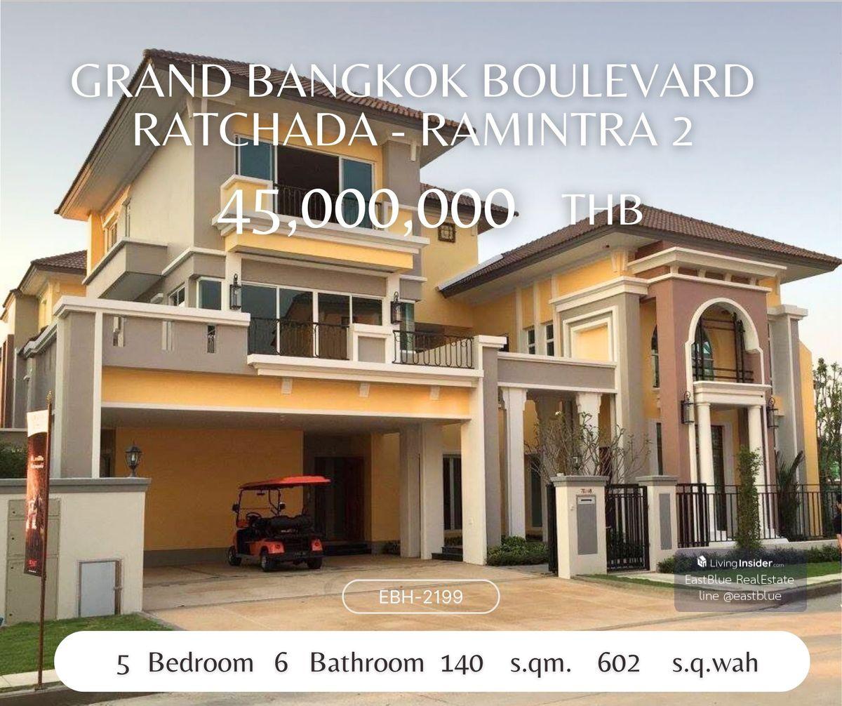 บ้านหลังใหญ่ บนทำเลที่มีศักยภาพสูง รัชดา-รามอินทรา. Project : Grand bangkok Boulevard Ratchada - Ramintra 2 ID : EBH-2199ET1 5 Bed 6 Baht House Area :602 sqm Land Area :140 sq.wah Selling Price : 45,000,000 THB . Contact, Appointment for viewing. Line: @eastblue / https://lin.ee/yNwHbFs WhatsApp: คลิกเพื่อดูเบอร์โทรติดต่อ . View more listings on our website: https://www.eastblueth.com ❗️❗️Co-Agent contact Line@ Only❗️❗️. . บ้านแกรนด์บางกอกบูเลอวาร์ดรัชดา-รามอินทรา 2 ขนาดที่ดิน 1 งาน 40 ตารางวา (140 ตร.ว) พื้นที่ใช้สอย 602 ตารางเมตร บ้านเดี่ยว 3 ชั้น 5 ห้องนอน 6 ห้องน้ำ 2 ห้องแม่บ้าน 3 ที่จอดรถ . คฤหาสน์สุดหรู 3 ชั้นที่มาพร้อมดีไซน์อันเลิศหรูและทันสมัย ในสไตล์ Tuscany จากอิตาลีที่ทั้งสวยงามและหรูหรา เต็มเปี่ยมไปด้วยสุนทรียภาพ พร้อมครอบครองชีวิตงามสง่าเหนือใคร บนเอกสิทธิ์แห่งทำเลศักยภาพ