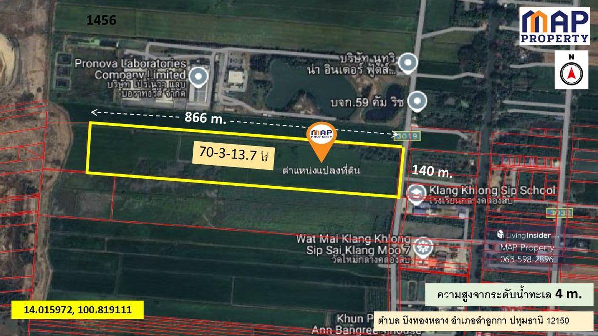 ที่ดินทำเลดีติดถนนคลอง10 - บนเนื้อที่ 70 ไร่ หน้ากว้าง 140 เมตร ความลึก 866 เมตร - หันหน้าทางทิศตะวันออก แนวถนนกว้าง 30 เมตร - เหมาะดำเนินกิจการ - เดินทางสะดวกเข้าจากนครนายก 4.5 กิโลเมตร - จากแยกวงแหวนกาญจนาภิเษก 18 กิโลเมตร - เดินทางสะดวก ใกล้บิ๊กซี ติดต่อ: คุณเจ 065.663.9982