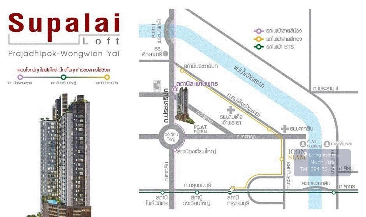 คอนโด ศุภาลัย ลอฟท์ ประชาธิปก-วงเวียนใหญ่ ที่ตั้ง ติดถนนประชาธิปก ฝั่งขาออก แขวงสมเด็จเจ้าพระยา เขตคลองสาน กทม. 10600 ใกล้ทุกการเดินทาง ใกล้ทั้งโซนเพชรเกษม, โซนพระนครฯ และ CBD สีลม-สาทร และยังเป็นพื้น