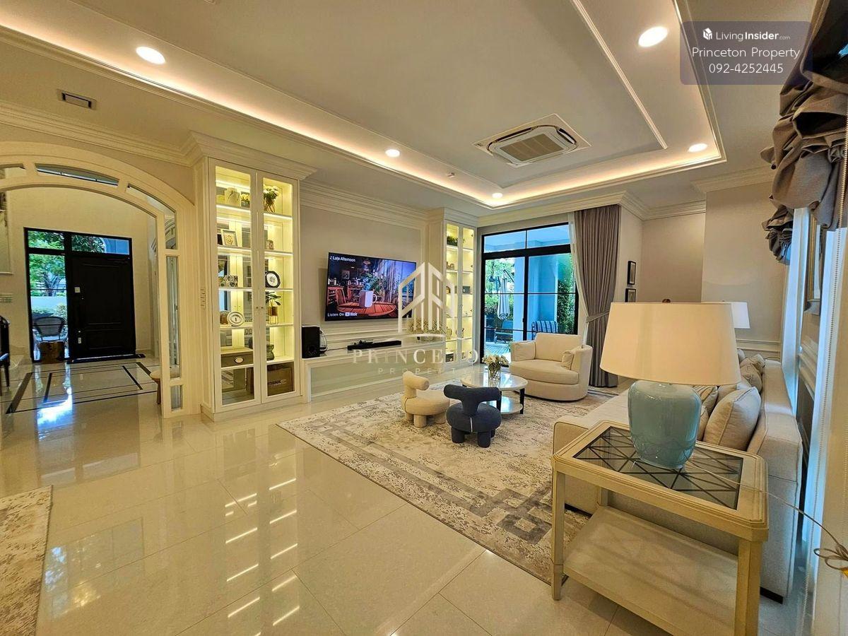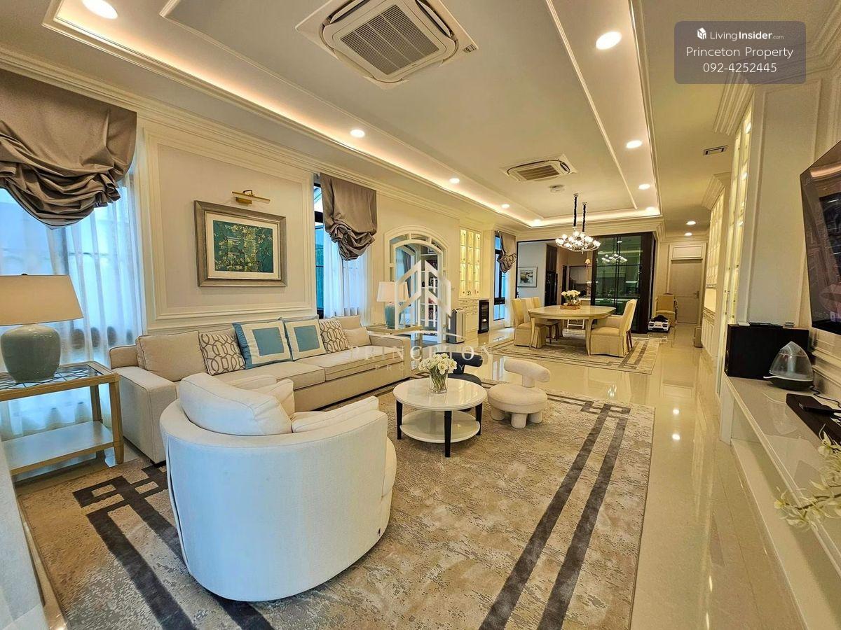 ขายหรือให้เช่าบ้านเดี่ยว นันทวัน พระราม 9 กรุงเทพกรีฑาตัดใหม่ บ้าน Size XL ทำเลศักยภาพ ใกล้โรงเรียนนานาชาติชั้นนำ และทางด่วนมอเตอร์เวย์ รายละเอียด - ที่ดิน 170 ตร.วา - เนื้อที่ใช้สอย 650 ตร.ม. - 5 ห้องนอน 5 ห้องน้ำ - 2 ห้องรับแขก - 1 ห้องทำงาน 1 ห้องหนังสือ - 3 ห้องเม่บ้าน - 8 ที่จอดรถ - ด้านหน้าหันทิศใต้ บ้านติดน้ำพุ สวนและน้ำรอบบ้าน ราคาเช่า 390,000 บาทต่อเดือน ราคาขาย: 110 ล้านบาท Luxury House For Sale or Rent Nantawan Rama 9 – New Krungthepkreetha Fully Furnished, Size XL Details - Land 170 sq.wah - Usable area 650 sq.m. - 5 Bedrooms, 5 Bathrooms - 2 Living Rooms - 1 Office Room, 1 Book Room - 3 Maid Rooms - 8 Parking Spaces Price 390,000 baht per month Selling price: 110 Million THB For Viewing Please Contact Princeton Property MB: คลิกเพื่อดูเบอร์โทรติดต่อ Line Id: @princetonproperty Please click : https://lin.ee/7MSYQQJ FB: https://web.facebook.com/princetonpropertythailand/ Website: www.princetonpropertythailand.com