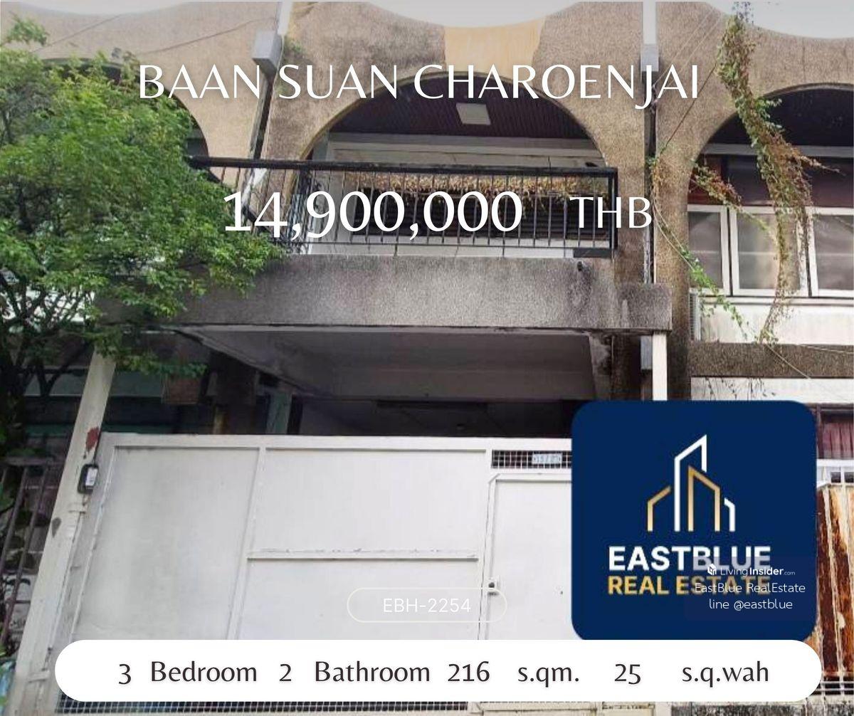 บ้านเอกมัย. Project : Baan Suan Charoenjai ID : EBH-2254ET1 3 Bed 2 Baht House Area :216 sqm Land Area :25 sq.wah Selling Price : 14,900,000 THB . Contact, Appointment for viewing. Line: @eastblue / h