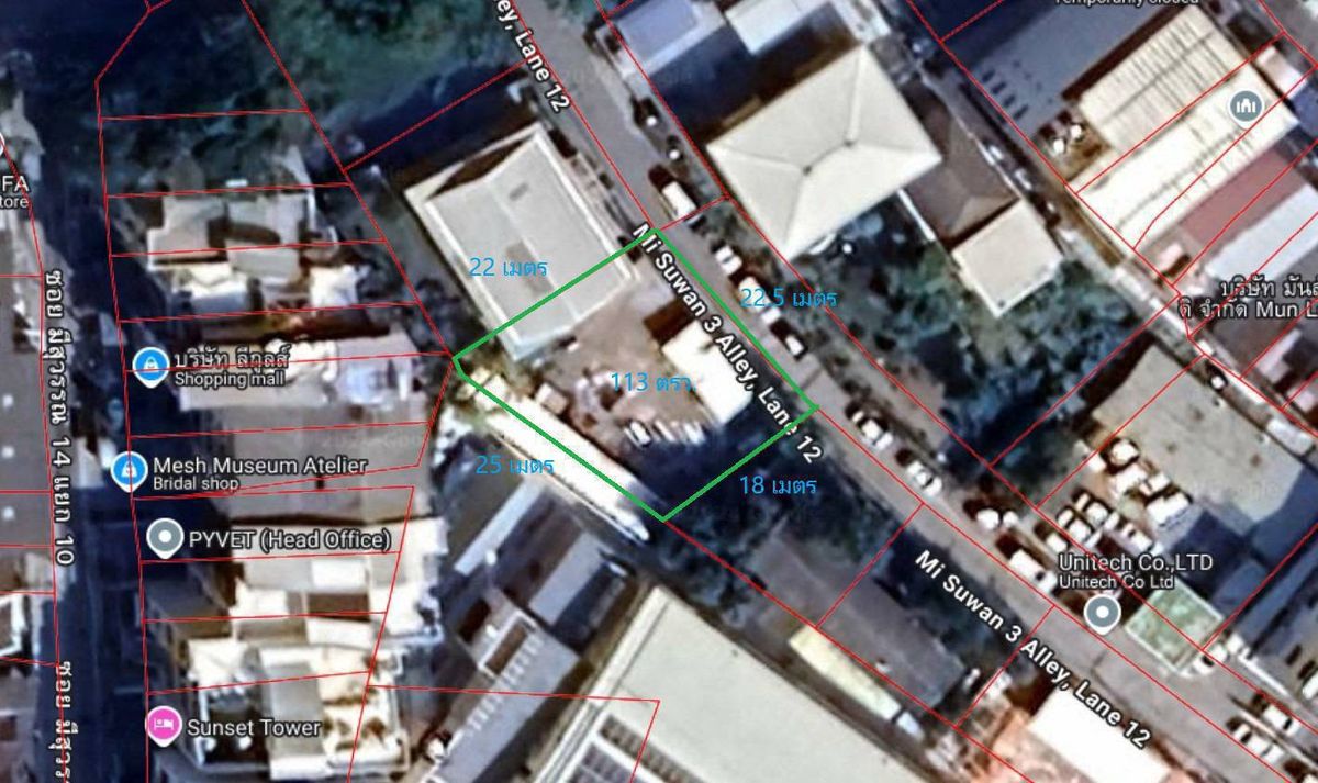 ขายที่ดิน 113 ตารางวา ซอยมีสุวรรณ 3 แยก 12 ซอยปรีดีพนมยงค์ 14 ถนนสุขุมวิท 71 แขวงพระโขนงเหนือ เขตวัฒนา กรุงเทพมหานคร ด้านหน้าติดถนน กว้าง 22 เมตร * ลึก 18 เมตร ทำเลดี การเดินทางสะดวก ใกล้ทางพิเศษฉลองร