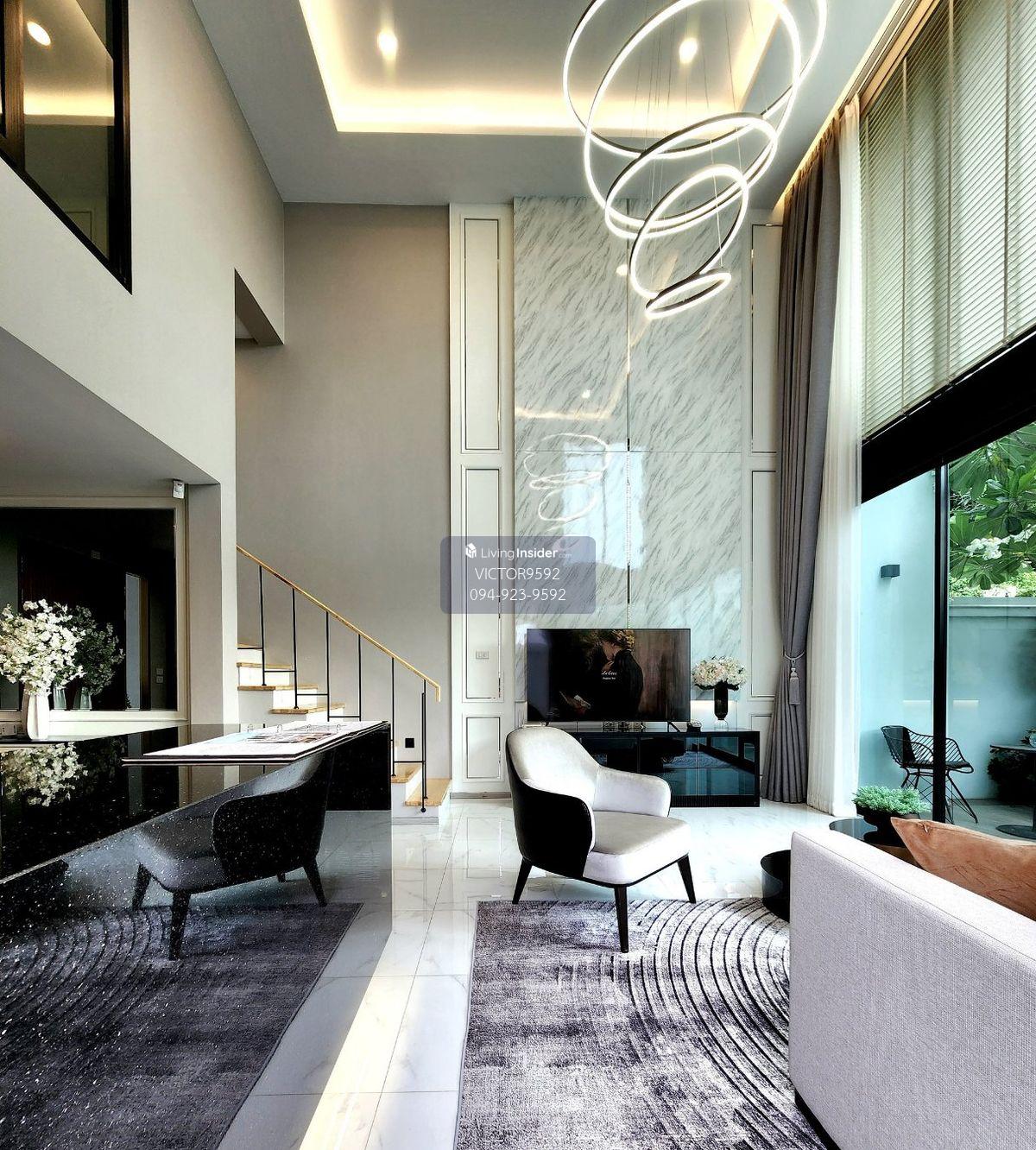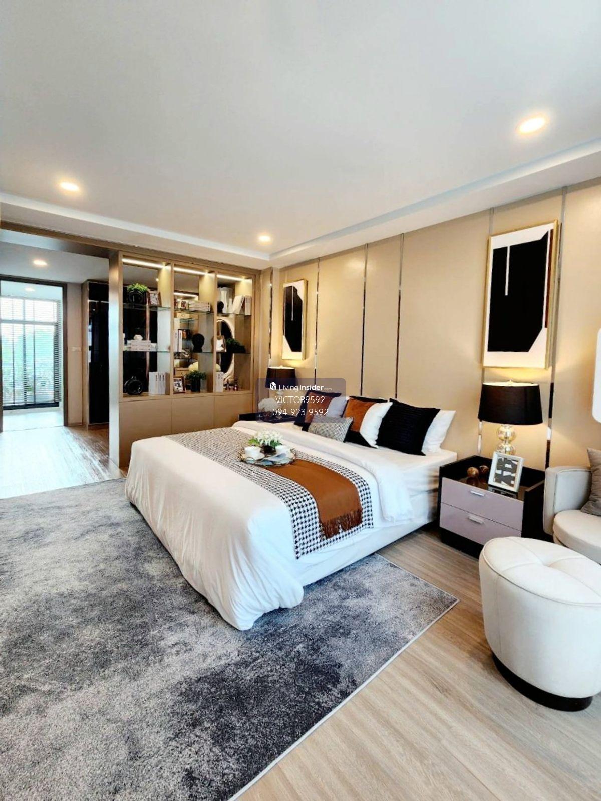 บ้านแฝด 3.5 ชั้น หน้ากว้าง 8 เมตร ที่ดิน 37.60 ตร.วา พื้นที่ใช้สอย 291.90 ตร.ม. (บ้านหลังมุม) – ฟังก์ชัน 3 ห้องนอน / 1 ห้องอเนกประสงค์ /4 ห้องน้ำ / 5 ที่จอดรถ – ประตูบ้านหันทิศตะวันออก – ตกแต่งครบพร้อมเฟอร์นิเจอร์และเครื่องใช้ไฟฟ้า – ไม่มีค่าส่วนกลาง – ค่าจดจำนอง ผู้ซื้อเป็นผู้ชำระ – ค่าธรรมเนียมและค่าใช้จ่ายในการโอนกรรมสิทธิ์ ผู้ซื้อแล้วผู้ขายชำระฝ่ายละครึ่ง – ค่าประกัน มิเตอร์ไฟฟ้า ประปา ผู้ซื้อเป็นผู้ชำระ สรุปเทคโนโลยีและระบบรักษาความปลอดภัย Security System ระบบรักษาความปลอดภัยจาก SECOM – แจ้งเตือนการบุกรุก เชื่อมต่อไปยังบริษัทรักษาความปลอดภัย SECOM ที่พร้อมเข้าช่วยเหลือตลอด 24 ชั่วโมง และติดต่อหน่วยงานรัฐที่เกี่ยวข้องกับเหตุนั้น เข้าช่วยเหลือในเวลาเดียวกัน – ระบบ Magnetic Sensor ติดตั้งที่ประตูหน้าต่างทุกบาน – ปุ่มขอความช่วยเหลือฉุกเฉินติดตั้งทุกชั้น ( รวมถึงกรณี เกิดเหตุร้าย, อุบัติเหตุ, เจ็บป่วย ช่วยเหลือตนเองไม่ได้ รวมถึงเมื่อเกิดความไม่ปลอดภัยใดๆในพื้นที่ใกล้เคียง เช่น รอบบริเวณที่พักอาศัย และกรณีความไม่ปลอดภัยที่คล้ายกัน ) Solar Cell System ขนาด 3 กิโลวัตต์ ติดตั้งแยกเป็นส่วนตัวสำหรับบ้านทุกหลัง กำลังไฟฟ้า =2800 w / hour หรือ 2.5 -2.8 units / hour นำไปใช้กับ Air Con 2-3 เครื่อง ( เครื่องละ 9000 BTU คำนวณจากกำลังไฟสูงสุดที่ผลิตได้ ช่วงเวลา 10.00-15.00) จุดติดตั้ง พื้นที่บนหลังคาของอาคารแต่ละหลัง Double Layer Wall กำแพงสองชั้น เพิ่มความเป็นส่วนตัวจากมลภาวะทางเสียง Air Purifier System ระบบหมุนเวียนอากาศ นำอากาศจากภายนอกเข้าสู่ตัวบ้าน โดยกรองฝุ่นละอองระดับ PM 2.5 สามารถใช้งานผ่าน Smart Phone ได้ Smart Home – Motion Sensor ที่ประตูทางเข้าตัวบ้าน และโถงพัก Foyer – Motion Sensor ที่บันไดตลอดทางเดินทุกชั้น – Light Application Controlled ในทุกห้องนอน (Master, 2nd Bedroom, 3rd Bedroom) – CCTV ควบคุมการทำงานผ่าน Smart Phone (4 จุด รอบตัวบ้าน) – ประตูม้วนรีโมต ที่โรงจอดรถ (ประตูใหญ่ทางเข้าบ้าน) แบบบ้านพักอาศัย ชั้น 1 – เนื่องจากหน้าบ้านที่กว้างถึง 8 เมตร ทำให้สามารถจอดรถเรียงกันได้ 3 คัน และยังมีพื้นที่เหลือด้านข้างค่อนข้างกว้างพอสำหรับจอดรถได้อีก 1-2 คัน เมื่อเข้ามายังตัวบ้านที่ชั้น 1 จะถูกจัดเป็นพื้นที่ Living area ขนาดใหญ่ เป็นแบบ Double Volume และสามารถเปิดเชื่อมต่อกับพื้นที่สวนหลังบ้าน พร้อมห้องน้ำแบบ Powder room ชั้นลอย – ถูกจัดเป็นพื้นที่ครัว และพื้นที่ทานอาหาร ได้ช่องเปิดจากทางหน้าบ้าน และช่องเปิดเชื่อมต่อกับพื้นที่ Living area ที่ชั้น 1 บริเวณ Double Volume ทำให้ได้วิวพื้นที่สีเขียวหลังบ้านด้วยค่ะ ชั้น 2 – จะเป็น Master Bedroom ยกชั้น ได้บรรยากาศเหมือนกับ Penthouse ซึ่งมีพื้นที่ Walk-in Closet และห้องน้ำขนาดใหญ่ ได้ Bathtub และ อ่างล้างมือแบบ His&Her ชั้น 3 – ก็จะเป็นห้องนอน