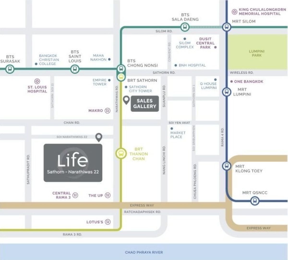 LIFE Sathorn-Narathiwas 22 ทำเลเชื่อมต่อสาทร : ที่ตั้งโครงการอยู่ในซอยนราธิวาส 22 ขับไปสาทรได้ในระยะแค่ 2.4 กิโลเมตร เหมาะกับคนที่ทำงานอยู่ในโซน CBD ที่กำลังมองหาคอนโดใกล้ที่ทำงาน เดินทางสะดวก อีกทั้ง