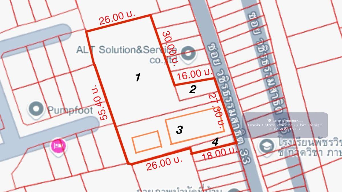 ซ.วชิรธรรมสาธิต 33 สุขุมวิท 101/1 เข้าจากปากซอย ประมาณ 70 ม. อาคารหอพัก 9 ชั้น , บ้านเดียว 1 ชั้น , ที่จอดรถแบบมีหลังคา บนที่ดินเนื้อที่ 498 วา เหมาะสำหรับ ปรับปรุงเป็นสำนักงาน และมีพื้นที่โล่ง เพื่อสร้างโกดังในเมืองเพิ่มเติม เดินทางสะดวกมากๆ เข้า-ออก ได้หลากหลายเส้นทาง https://youtube.com/watch?v=CiGSWIPwcLY รายละเอียด ผังเมือง สีส้ม ย.6-34 FAR 4.5 : 1 OSR 6.5 เนื้อที่ดินรวม 498 ตร.ว. อาคาร 9 ชั้น สูง 27 ม. พื้นที่ใช้สอย 1,300 ตร.ม. (มีลิฟต์ 1 ตัว สามารถเพิ่มได้อีก 1 ตัว) บ้าน 1 ชั้น พื้นที่ใช้สอยประมาณ 80 ตร.ม. ที่จอดรถ แบบมีหลังคา 16 คัน อาคารสูง มีรายงานการตรวจสอบอาคารทุกปี (พร้อมเอกสารรายงานการตรวจสอบ) ซื้อเพื่อปรับปรุง คุ้มกว่าสร้างใหม่แน่นอน การเดินทาง ถ.สุขุมวิท 101/1 (วชิธรรมสาธิต) ห่างจาก ถ.สุขุมวิท 101/1 ประมาณ 70 ม. ห่างจาก ถ.สุขุมวิท ประมาณ 1.80 กม. ห่างจากสถานีรถไฟฟ้าปุณณวิถี 2.30 กม. ห่างจากสถานีรถไฟฟ้าอุดมสุข 2.20 กม. ห่างจากสถานีรถไฟฟ้าสวนหลวง ร.9 2.80 กม. ห่างจากด่านทางพิเศษ S1 ระยะทางประมาณ 3.80 กม. เข้า-ออก ได้ทั้ง ซ.สุขุมวิท 101 ถ.สุขุมวิท ถ.อ่อนนุช ถ.อุดมสุข ถ.ศรีณครินทร์ สถานที่ใกล้เคียง @Park 160 ม. ตลาดมหาสิน : 850 ม. MaxValu 500 ม. คลาวด์ 11 2.00 กม. ทรู ดิจิทัล พาร์ค 1.9 กม. แม็คโคร ฟู้ดเซอร์วิส อุดมสุข 2.1 กม. ตลาดอุดมสุข : 2.6 กม. Central บางนา : 3.9 กม. Big C บางนา : 4.0 กม. The Phyll 4.1 กม. พาราไดซ์ พาร์ค : 4.1 กม. Lotus อ่อนนุช : 4.7 กม. ซีคอน สแควร์ : 4.5 กม. BigC อ่อนนุช : 4.9 กม. ตลาดนัดรถไฟ : 5.0 กม. Bitec บางนา : 3.4 กม. รพ.บางนา 1 : 4.0 กม. รพ.ไทยนครินทร์ : 4.1 กม. รพ.ทหารเรือ กรุงเทพ : 5.5 กม. รพ.สุขุมวิท : 6.5 กม. รร.นานาชาติแองโกลสิงคโปร์ 2.3 กม. รร.นานาชาติ Berkeley : 2.8 กม. วิทยาลัยดุสิตธานี : 3.3 กม. รร.นานาชาติ St.Andrews : 4.8 กม. รร.บางกอกพัฒนา : 5.9 กม. ค่าใช้จ่ายวันโอน 50/50 รายละเอียดอื่นๆ ไม๊ท์ Winner Estate คลิกเพื่อดูเบอร์โทรติดต่อ บริการ ฝากขาย อสังหาริมทรัพย์ บริการสินเชื่อ ฟรี ไม่มีค่าใช้จ่าย #นายหน้ามืออาชีพ #WinnerEstate #BoonEstate #บ้านมือสอง #สำนักงาน #ที่ดิน #ที่พักอาศัย #โกดัง Winner Estate Co.,Ltd. บริษัทเปิดดำเนินการมานานกว่า 20 ปี -บริการฝากขาย อสังหาริมทรัพย์ จำนอง ขายฝาก โดยทีมงานมืออาชีพ มีทีมขายมากกว่าพันคนทั่วประเทศ -วิเคราะห์การตั้งราคาให้ทรัพย์ขายได้สำเร็จ -การตลาดตรงกลุ่มเป้าหมาย -ฟรีค่าการตลาดทุกช่องทาง จนกว่าทรัพย์จะขายได้ -บริการด้วยความจริงใจ ซื่อสัตย์ ยุติธรรม ทั้งผู้ขายและผู้ซื้อ