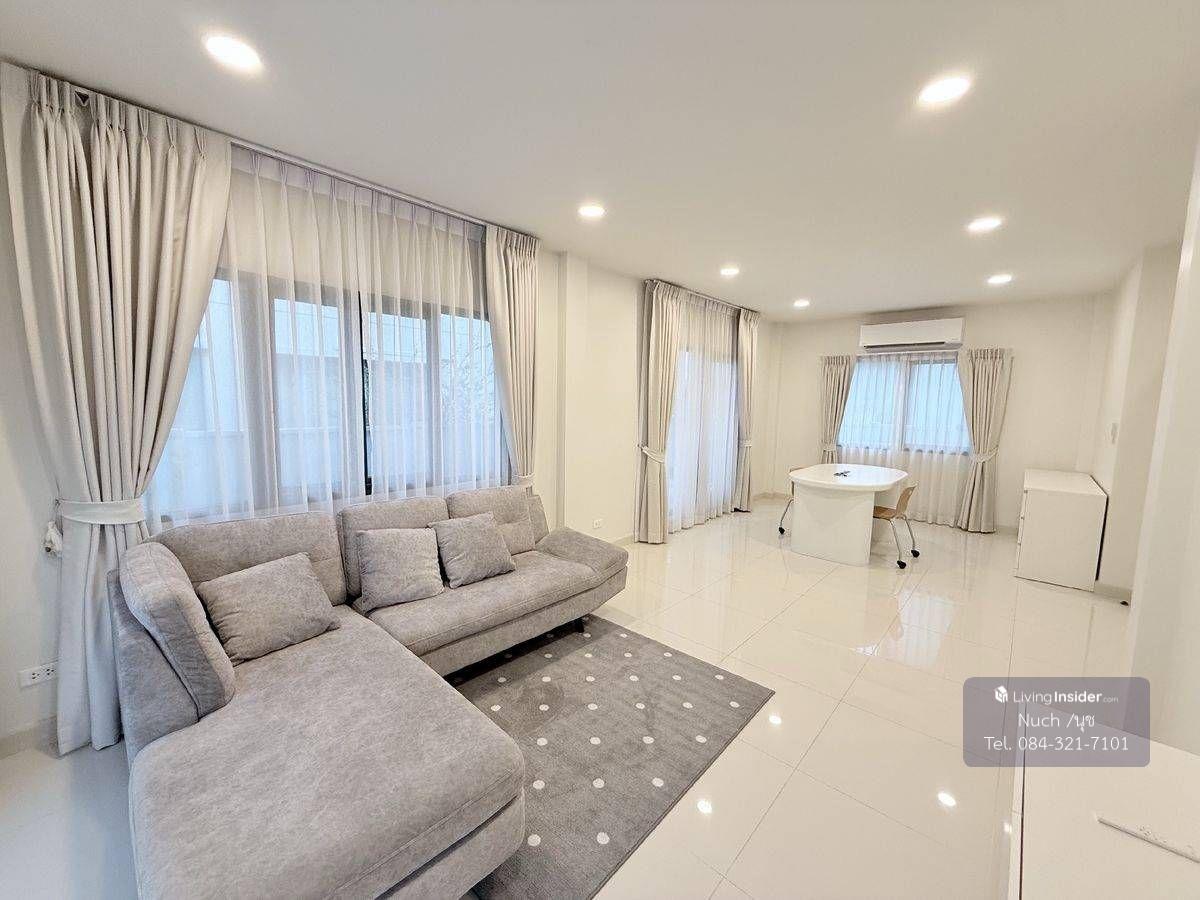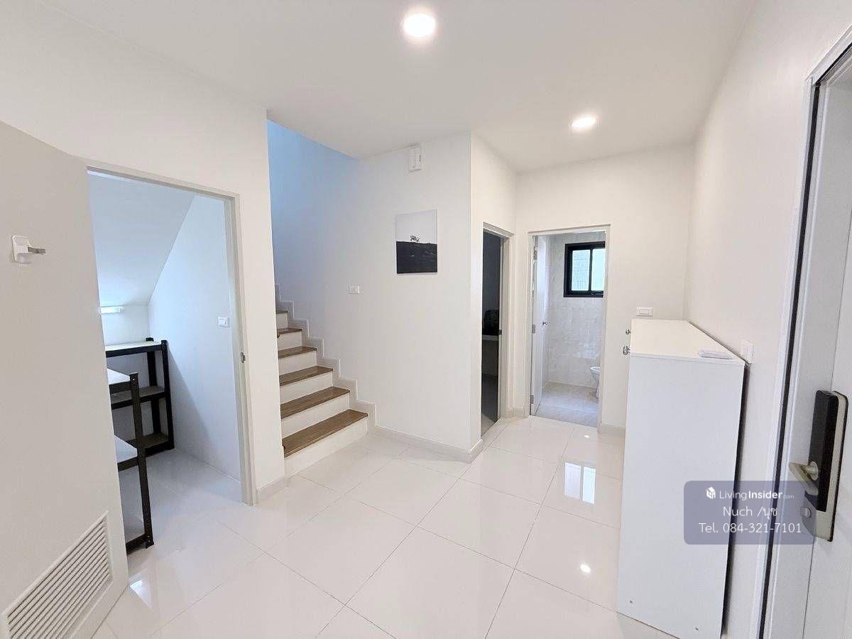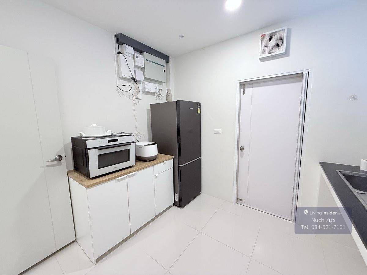 โครงการ Centro Bangna | เซนโทร บางนา ที่ตั้งโครงการอยู่บนถนนกาญจนาภิเษก ต.บางแก้ว อ.บางพลี จ.สมุทรปราการ ทำเลติด Mega บางนา เพียง 1 กม บ้านเดี่ยว 2 ชั้น พื้นที่รอบบ้าน ขนาดที่ดิน 50.8 ตารางวา พื้นที่ใช้สอย 164 ตารางเมตร หน้าบ้านทิศใต้ | 3 ห้องนอน | 3 ห้องน้ำ| 2 ที่จอดรถ พร้อมเฟอร์นิเจอร์ และเครื่องใช้ไฟฟ้าทั้งหลัง แอร์ทั้งหลัง 3 ห้องนอน 1 ห้องนั่งเล่น EV Charger AUTEL ประตูรั้วมอเตอร์ สั่งการผ่านแอพ รีโมท และ บลูทูธ Digital Door Lock, Home Automation ควบคุมระบบปรับอากาศ , ไฟแสงสว่าง , ความปลอดภัย Magnetic Sensor ทั้งหลัง ติดตั้งกันสาด และปูพื้นทางเดินSCG รอบบ้าน ห้องครัวแบบปิด พร้อมเตาแก็สแบบฝัง 2หัว ติดฟิล์มกรองแสง, ความร้อน ทั้งหลัง และติดตั้งมุ้งลวดแบบจีบ พร้อมผ้าม่าน ระบบไฟ 3 เฟส 30(100) TOU ระบบแจ้งเตือนรถเข้า-ออก ผ่านแอพ Smart ค่าส่วนกลาง 24 บาท/ตารางวา/เดือน ขาย 10,000,000 บาท (ค่าโอน ผู้ซื้อ/ผู้ขาย จ่ายคนละครึ่ง) ขายพร้อมคนเช่า ค่าเช่า 80,000 บาท/เดือน ติดต่อ คุณนุช เบอร์โทรศัพท์ : คลิกเพื่อดูเบอร์โทรติดต่อ Line : d558899d WhatsApp : คลิกเพื่อดูเบอร์โทรติดต่อ สิ่งอำนวยความสะดวก Clubhouse ฟิตเนส สระว่ายน้ำระบบเกลือขนาดใหญ่ สระว่ายน้ำเด็ก พื้นที่สวนสีเขียวขนาดใหญ่ กว่า 5 ไร่ เจ้าหน้าที่รักษาความปลอดภัย 24 ชั่วโมง ระบบ CCTV ทางเข้า-ออกโครงการ ระบบ KATSAN สำหรับเข้า-ออกโครงการ ระบบสัญญาณกันขโมยภายในบ้าน ระบบ Magnetic ทั้งหลัง สถานที่สำคัญใกล้เคียง Mega บางนา Ikea บางนา ไทวัสดุ Concordian International School Singapore International School รร.ราชวินิตบางแก้ว รพ.จุฬารัตน์ รพ.พริ๊นซ์ สุวรรณภูมิ