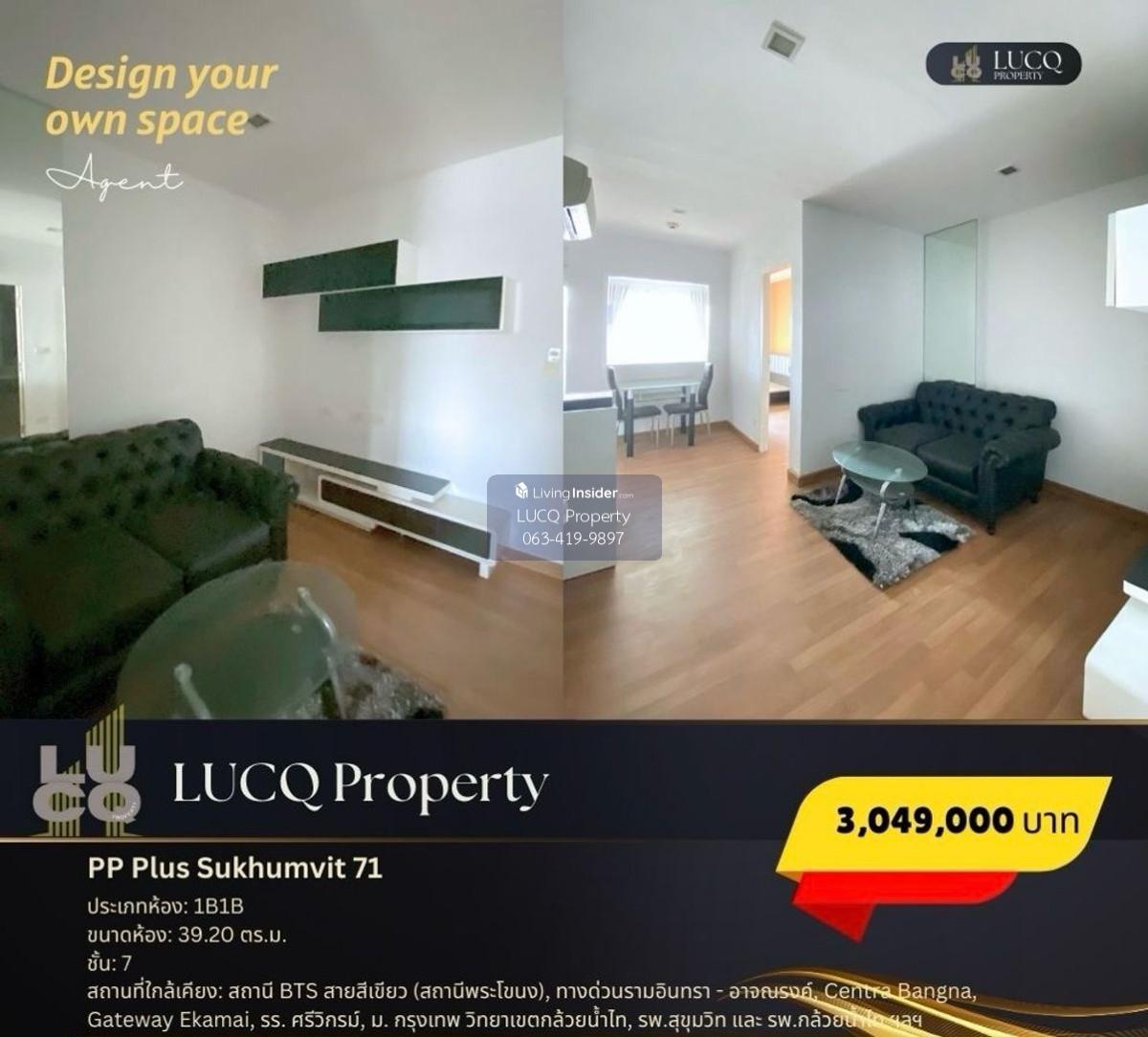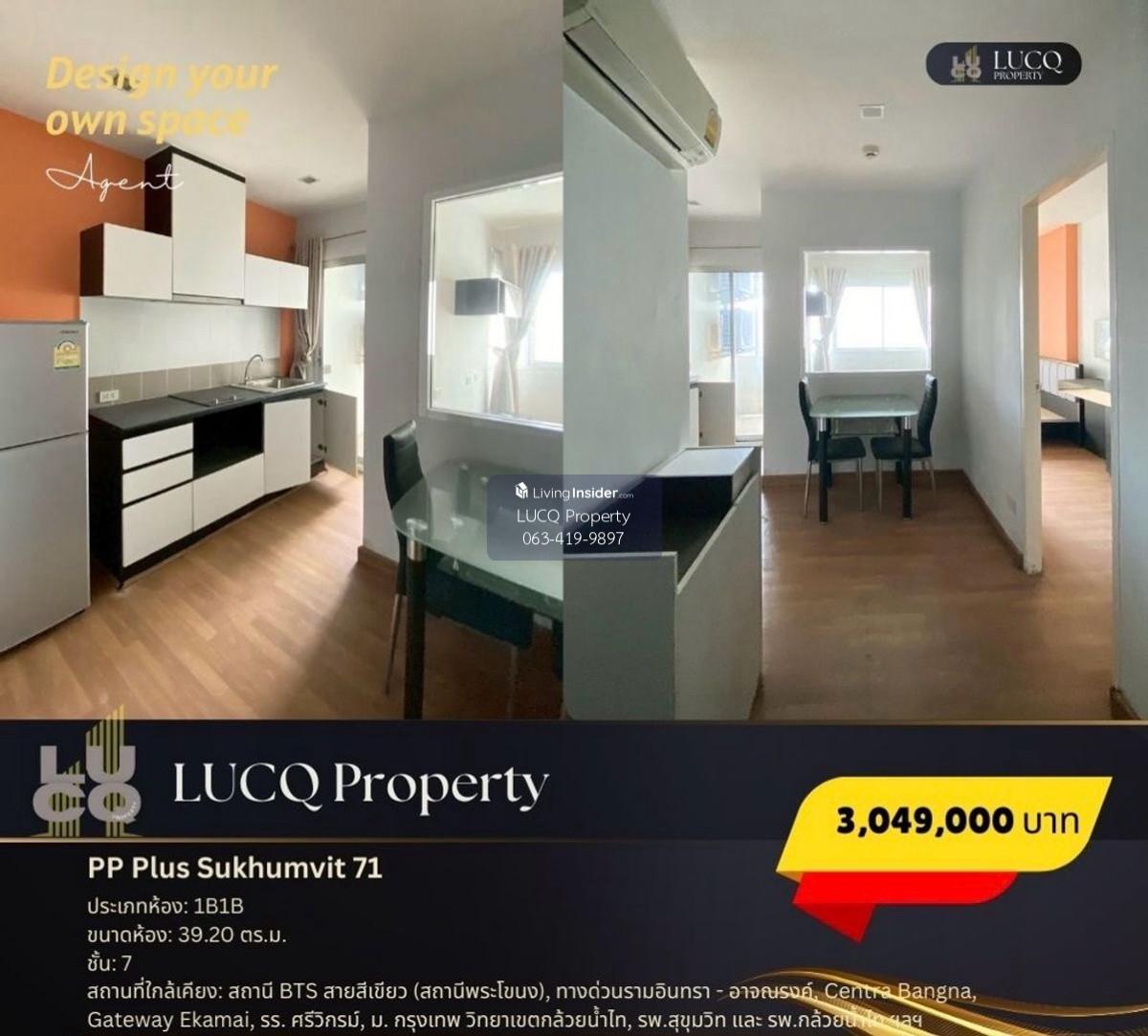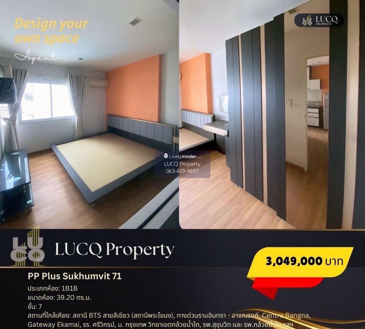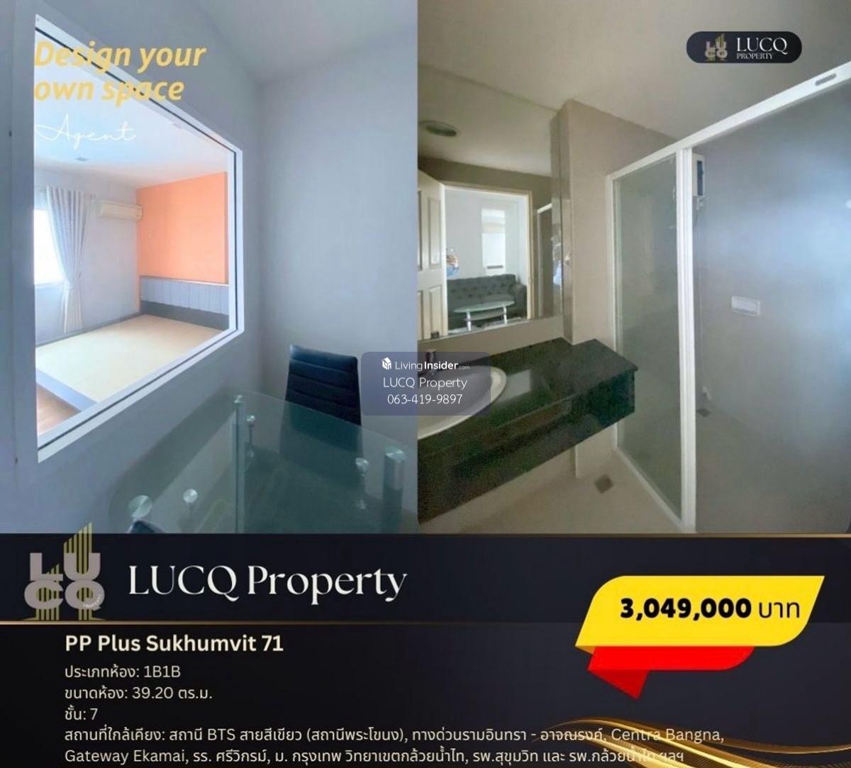 พีพี พลัส สุขุมวิท 71 (PP Plus Sukhumvit 71)   🌳 อพาร์ทเม้นท์ใจกลางเมืองสุขุมวิทย่านธุรกิจที่สำคัญ ใกล้สถานีรถไฟฟ้า BTS พระโขนง และทางด่วนรามอินทรา - อาจณรงค์   พื้นที่ขนาด 39.20 ตร.ม. ชั้น 7 ฟังก์ชัน 1 ห้องนอน | 1 ห้องน้ำ เหมาะสำหรับการลงทุนและอยู่อาศัยเอง   🌳 สิ่งอำนวยความสะดวก ระบบรักษาความปลอดภัย 24 ชม. พร้อม CCTV, Key Card Access, สวนพักผ่อน, สระว่ายน้ำ และ ฟิตเนส   🛍 แหล่ง Lift Style และ Shopping Hub:   • Gateway Ekkamai • Emsphere • Major Cineplex Sukhumvit • Big C, Lotus’s, HomePro • ใกล้โรงเรียนและมหาวิทยาลัยชั้นนำ เช่น โรงเรียนศรีวิกรม์, มหาวิทยาลัยกรุงเทพ วิทยาเขตกล้วยน้ำไท, มหาวิทยาลัยเกษมบัณฑิต เป็นต้น • ใกล้โรงพยาบาลสุขุมวิท, โรงพยาบาลกล้วยน้ำไท, โรงพยาบาลคามิลเลียน, ตลาดอ่อนนุช ฯลฯ   🌳 การเดินทาง   เป็นจุดศูนย์รวมของการคมนาคม ใกล้กับรถไฟฟ้า BTS สายสีเขียว (สถานีพระโขนง), สถานีรถไฟฟ้า Airport Rail Link, ทางด่วนรามอินทรา - อาจณรงค์ นอกจากนี้บริเวณที่ตั้งโครงการยังเชื่อมต่อกับสุขุมวิท, พระราม 4, พระราม 9 สะดวกสบายต่อวิถีคนเมืองเป็นอย่างมาก ที่พักทำเลดี ๆ แบบนี้ ในราคา 3,049,000 บาท ‼️   ✳️ สอบถามข้อมูลเพิ่มเติม   โทรศัพท์  คลิกเพื่อดูเบอร์โทรติดต่อ (Yoq)   Line Official: @lucq.property #ขายคอนโด #คอนโดมือสอง #สุขุมวิท71