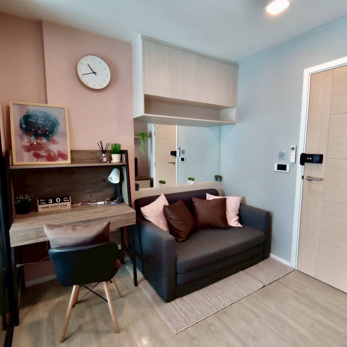 Kave Condo 41/579 🌃 📍สถานที่ตั้ง : ตรงข้าม ม.กรุงเทพ วิทยาเขตรังสิต มีสะพานลอยหน้าโครงการ เดิน 5 นามีถึง จุดเด่นของห้องนี้📍อาคาร C ชั้น 8 ชั้นบนสุด ห้องริมสุด และไม่มีห้องตรงข้าม มีความเป็นส่วนตัว ใกล้สระว่ายน้ำ ฟิตเน็ต สวนหย่อมดาดฟ้า (มีแค่ชั้น8 ตึกcเท่านั้นที่ไม่มีห้องตรงข้าม) 📌ห้องขนาด 25.6 ตรม.📌 หันหน้าทิศใต้ แดดไม่ร้อน 📍ค่าเช่าเดือนละ 10,000/เดือน (สัญญา 3ปี) 📍ค่าเช่าเดือนละ 11,000/เดือน (สัญญา 1-2ปี) 📍ราคารวมค่าส่วนกลาง พื้นที่จอดรถได้ 1 คัน พร้อมสติ๊กเกอร์และคีย์การ์ด 🚙 💥เฟอร์นิเจอร์และเครื่องใช้ไฟฟ้าที่มีให้💥 - Bluetooth sound system - Digital door lock - TV smartTV LG 32 นิ้ว - ตู้เย็น 2 ประตู 7.7 คิว - เครื่องซักผ้าฝาหน้า LG 7kg. - แอร์ daikin inverter 2 เครื่อง (ห้องนอนและห้องนั่งเล่น) - เครื่องทำน้ำอุ่น - ไมโครเวฟ 20 L -หม้อหุงข้าว -กาน้ำร้อน -โต๊ะทำงาน -กระจกติดผนัง พร้อมตู้เก็บของ -บิ้วอินชั้นวางของปลายเตียงนอน -เตียง 5 ฟุตพร้อมชุดเครื่องนอน -โต๊ะหัวเตียง -โคมไฟหัวเตียง - โซฟาปรับนอนได้ -โต๊ะกินข้าว - ติดผ้าม่าน 2 ชั้น และ ห้องครัวมีผ้าม่านม้วน -ติดประตูกระจกบานเลื่อนแยกจากห้องครัวกับห้องนั่งเล่น -ระเบียงใช้ได้จริง มีราวตากผ้าพร้อม 💥ส่วนกลาง จัดเต็ม💥 - car parking 🚗 - ห้องออกกำลังกาย 🤸♀️ - ห้อง Karaoke 🎤 -ห้อง Movie 🎥 - coworking space & meeting room 🤼 - สระว่ายน้ำชั้นดาดฟ้า วิวพาโนรามา 🏊🏻♂️ -สวนหย่อมพักผ่อนหย่อนใจชั้นดาดฟ้า 🌳🌿 🏘สถานที่ใกล้เคียง🏘 - mingle mall 🍱 -ม.กรุงเทพ🏫 -ม.ธรรมศาสตร์รังสิต🏤 -รพ.ธรรมศาสตร์ , รพ.ภัทร-ธนบุรี 🏥 -วัดบางขันธ์ 🛕 -ฟิวเจอร์ปาร์ครังสิต🍗🥨🍟 ✅จุดเด่นด้านหน้า condo ติดกับถนนพหลโยธิน เดินทางง่าย มีท่ารถเมล์ รถตู้ รถบัส รถแท็กซี่ เข้ากรุงเทพ ส่วนใครมีรถส่วนตัวสามารถเข้ากรุงเทพโดยไม่ต้องกลับรถ หรือออกต่างจังหวัดมีสะพานกลับรถด้านหน้าไม่ต้องกลับรถไกล ________________________________ 🙋🏻♀️ ทักมาสอบถาม/ชมห้องได้เลยค่ะ ☘️ Line : @664bforg (https://lin.ee/IOvoALs) 👉🏻 คลิกเพื่อดูเบอร์โทรติดต่อ, คลิกเพื่อดูเบอร์โทรติดต่อ