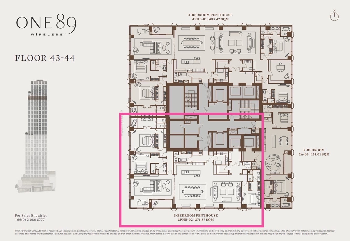 One89 Wireless Penthouse: 371.57sqm. 3bed 3bath Sell 259,000,000 Rent 1,400,000/mth Am: 0656199198