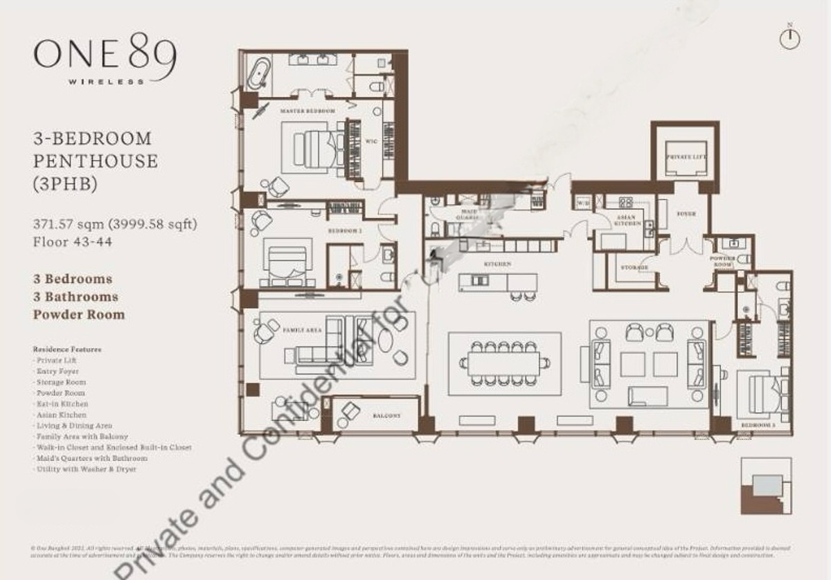 One89 Wireless Penthouse: 3 Bed Duplex Penthouse 371.57sqm. (3999.58sqft) 3 Bed 3 Bath + Powder Room + Maid Sell: 259,000,000 Rent: 1,400,000 Completion Aug-Sep 2025 Call/Line: Am คลิกเพื่อดูเบอร์โทรต
