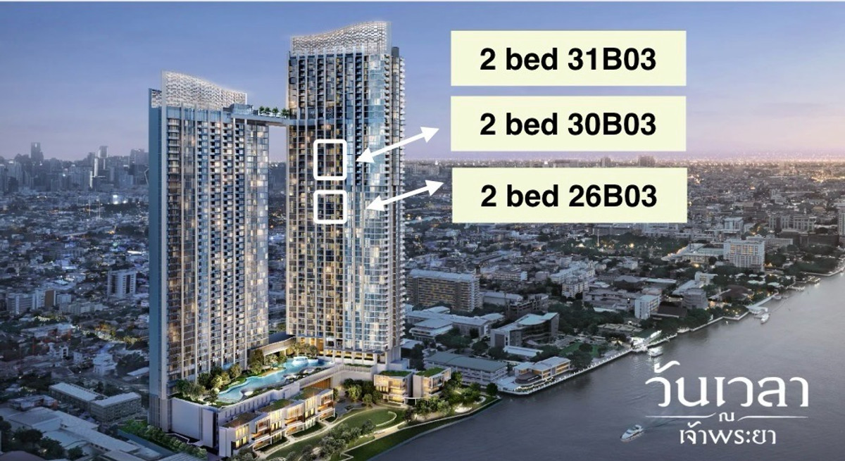 2ห้องนอน วิวแม่น้ำ ทิศดหนือ ชั้น 31, 30 และ 26 ห้อง B03