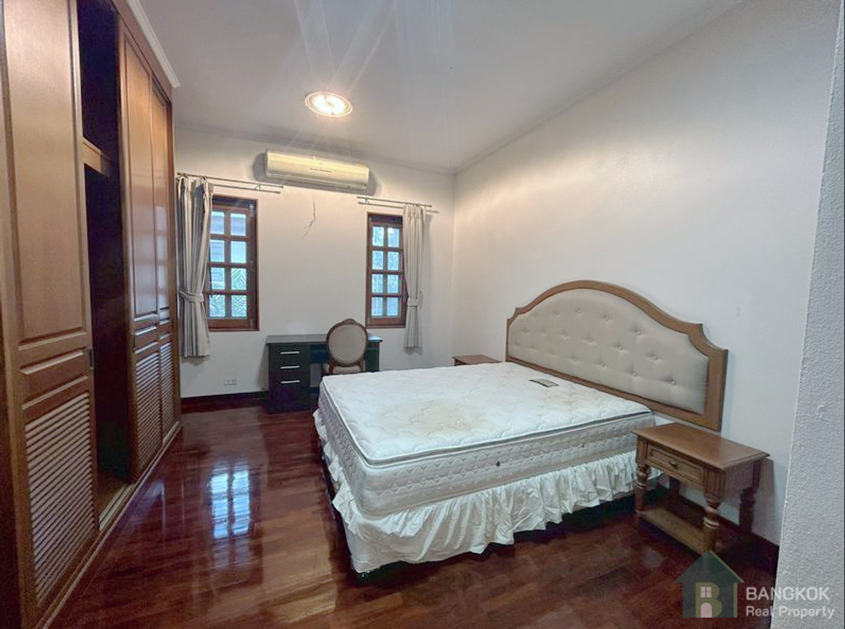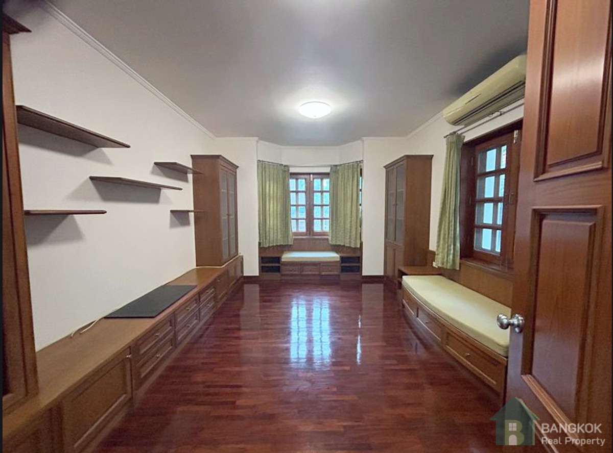 บ้านเดี่ยวขนาดใหญ่ 4+1 ห้องนอนหลังนี้ให้เช่าในย่านพระโขนง ตั้งอยู่ใกล้ถนนสุขุมวิท 71 บ้านอยู่ห่าง จากโรงเรียนประถมนานาชาติเซนต์แอนดรูว์เพียง 12 นาที (850 เมตร) และห่างจากสถานีรถไฟฟ้า BTS พระโขนง 18 นาที (1.2 กิโลเมตร) บ้านหลังนี้อนุญาตให้นำสัตว์เลี้ยงเข้าพักได้ ตั้งอยู่ในซอยส่วนตัว ได้รับการปรับปรุงใหม่ในปี 2025 พร้อมสวนขนาดใหญ่ ตัวบ้านมี 2 ชั้น ประกอบด้วย 4 ห้องนอนใหญ่ 1 ห้องทำงาน 5 ห้องน้ำ ห้องนั่งเล่นขนาดใหญ่ที่เปิดออกสู่สวน ห้องรับประทานอาหาร ห้องครัวขนาดใหญ่พร้อมเตาไฟฟ้า 2 ห้องสำหรับแม่บ้าน และห้องเก็บของ บ้านหลังนี้มีพื้นที่ใช้สอย 550 ตารางเมตร มีสวนขนาดใหญ่พร้อมสนามหญ้าและต้นไม้ใหญ่ บนที่ดินขนาด 222 ตารางวา (888 ตารางเมตร) พร้อมที่จอดรถสำหรับ 4-5 คัน สัญญาจ้างขั้นต่ำ 2 ปี (24 เดือนขึ้นไป) การนำสัตว์เลี้ยงเข้าพิจารณาเป็นเรื่องที่ต้องหารือกัน เงินประกันความเสียหาย 2 เดือน + ค่าเช่าล่วงหน้า 1 เดือน - ไม่รับโคเอเจนย์ สำหรับรายละเอียดเพิ่มเติม LINE ID: tombkkproperty https://line.me/ti/p/UcCUcpKdaL Mobile/WhatsApp: คลิกเพื่อดูเบอร์โทรติดต่อ พูดภาษาไทยและอังกฤษ