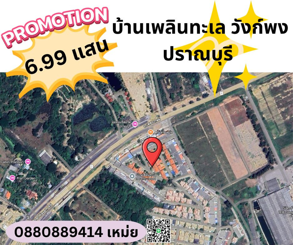 ทาวน์เฮาส์ชั้นเดียว ใกล้ทะเล วังก์พง ปราณบุรี ประจวบคีรีขันธ์ พร้อมอยู่ รีโนเวทใหม่เอี่ยมมาก ขนาด 15.9 ตร.วา 2 ห้องนอน 1 ห้องน้ำ 1 ที่จอดรถ 1 ครัว โครงการเพลินทะเล ติดถนนเพชรเกษม ใกล้แมคโค ปราณบุรี เพียง 2 กิโลเมตร ใกล้Global House ปราณบุรีเพียง 3 กิโลเมตร ไปทะเล หาดปราณบุรีเพียง 7 นาที 6.99 แสน บาท รวมโอน สนใจติดต่อ คลิกเพื่อดูเบอร์โทรติดต่อ เหม่ย