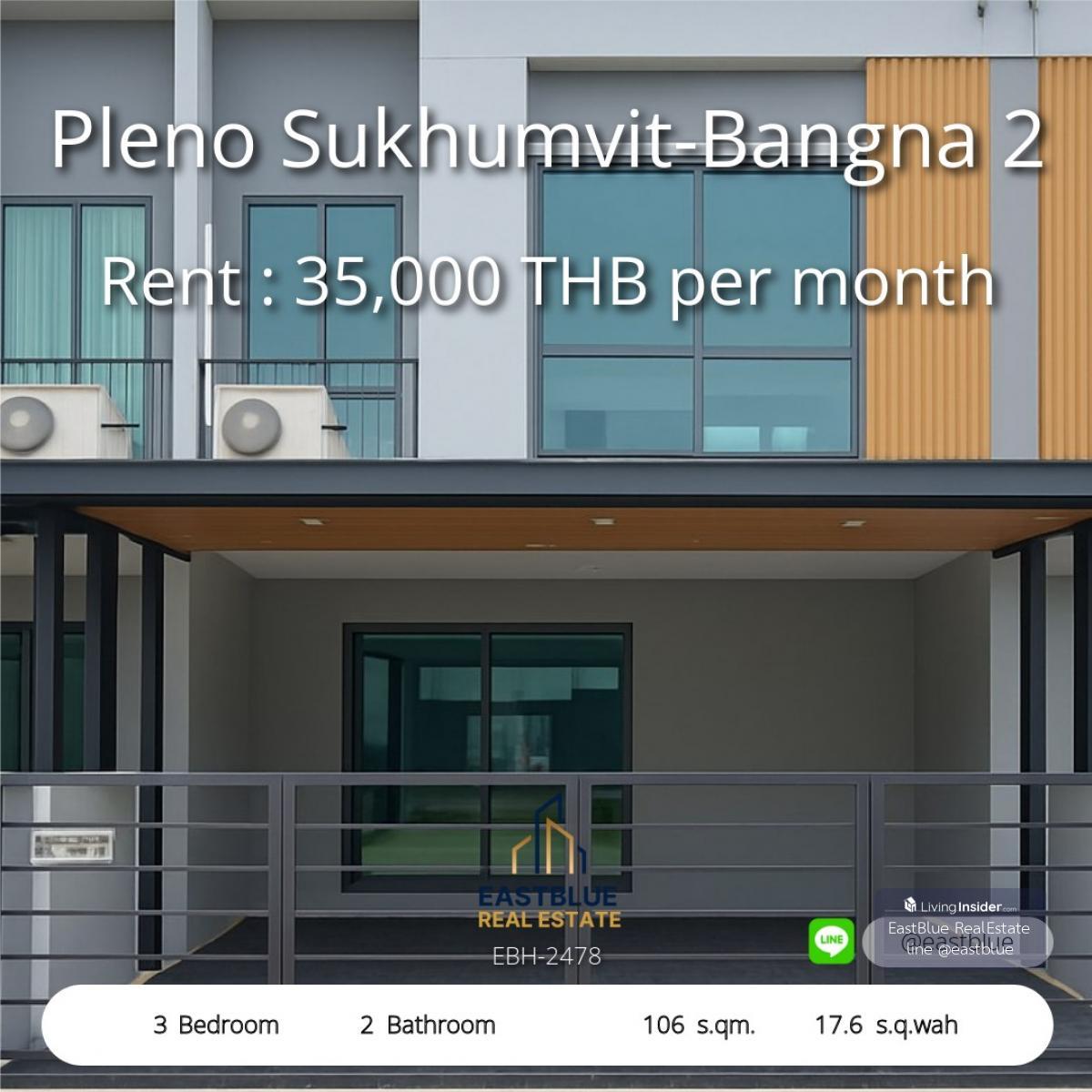Project : Pleno Sukhumvit-Bangna 2 ID : EBH-2478 3 Bed 2 Baht House Area :106 sqm Land Area :17.6 sq.wah Rental Price : 35,000 THB per month Selling Price : THB . ิติดต่อ Contact, Appointment for viewing. call: คลิกเพื่อดูเบอร์โทรติดต่อ WhatsApp: คลิกเพื่อดูเบอร์โทรติดต่อ - Eastblue เราคือทีมตัวแทนอสังหาริมทรัพย์มืออาชีพ ที่ได้รับความไว้วางใจด้วยยอดขายรวมมูลค่าหลายพันล้านบาท พร้อมทีมที่ปรึกษาผู้เชี่ยวชาญด้านการซื้อ ขาย และการลงทุนในอสังหาริมทรัพย์ . ดูทรัพย์อื่นๆมากกว่า 50,000 รายการ ,explore over 50,000 listings on our website: https://www.eastblueth.com ❗️❗️not accept co-agent❗️❗️ . Pleno Sukhumvit-Bangna 2 บ้านเดี่ยว 3 ห้องนอน 2 ห้องน้ำ 2 ที่จอดรถ • พื้นที่ใช้สอย 106 ตร.ม. ขนาดที่ดิน 17.6 ตร.ว. • ราคาเช่า 35,000 บาท/เดือน จุดเด่นโครงการ • โครงการทันสมัย สไตล์โมเดิร์น • ระบบรักษาความปลอดภัย 24 ชม. • คลับเฮ้าส์ ฟิตเนส และสระว่ายน้ำ สถานที่ใกล้เคียง • ใกล้ BTS บางนา 5.5 กม. • ไบเทค บางนา 6 กม. • เซ็นทรัล บางนา 7 กม. • โรงพยาบาลปิยมินทร์ 5 กม. • โรงเรียนนานาชาติบางกอกพัฒนา 4.5 กม. สนใจติดต่อดูบ้าน ก่อนหมดโอกาส #PlenoSukhumvitBangna2 #บ้านเช่าบางนา #อสังหาริมทรัพย์กรุงเทพ