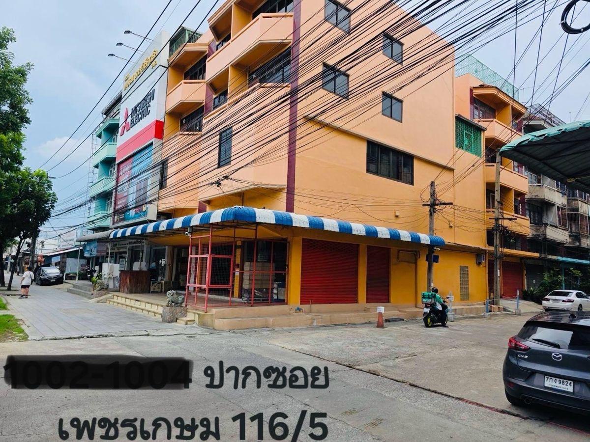 เช่าอาคารพาณิชย์ติดถนนใหญ่ 3+1 ห้อง ขาเข้าเมืองปากซอยเพชรเกษม 116/5 มีที่จอดรถ มีติดกันด้านในซอยอีก 1 ห้อง รวม 1,100 ตร.เมตร