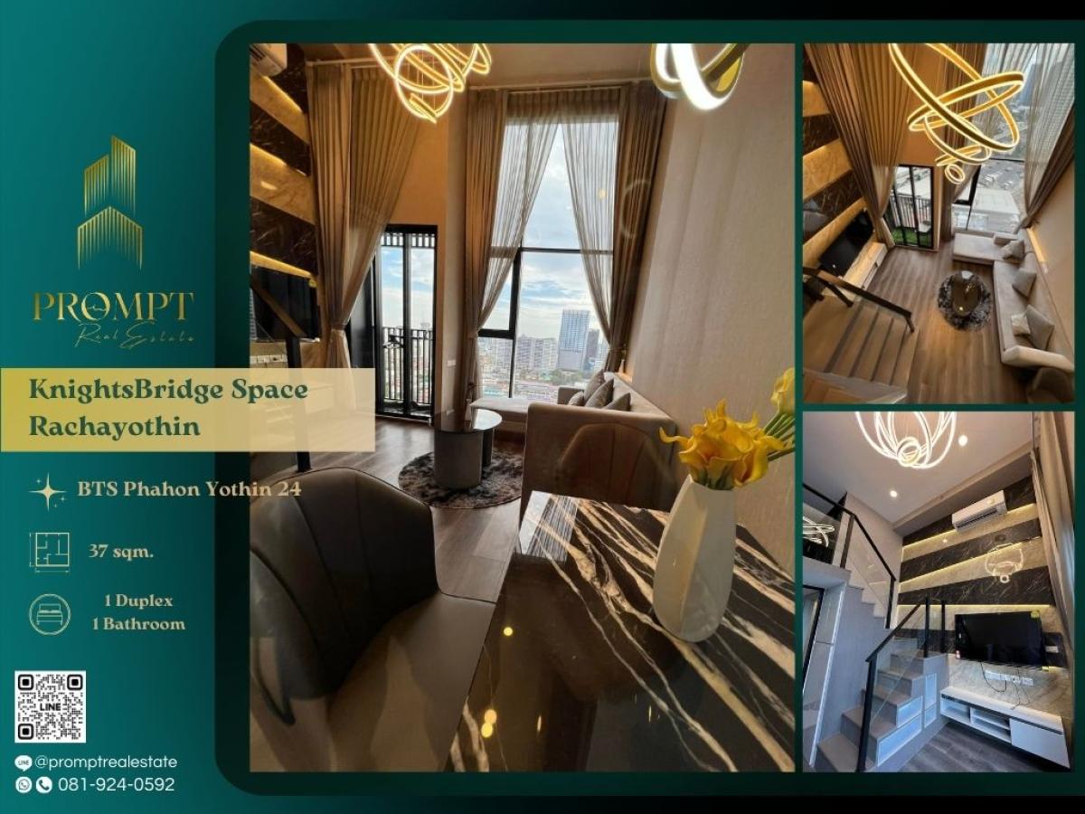 KL04173 - KnightsBridge Space Rachayothin : ไนท์บริดจ์ สเปซ รัชโยธิน BTS Phahon Yothin 24/ Union Mall/ Major Cineplex Ratchayothin - 37 sqm - 33 all floor - 20 floor - duplex room - 1 bathroom Rent 30,000 --------------- PROMPT Real Estate : - Tel / Whatsaap : คลิกเพื่อดูเบอร์โทรติดต่อ, คลิกเพื่อดูเบอร์โทรติดต่อ - Facebook https://www.facebook.com/PromptRealEstate - WeChat : promptrealestate - Line ID : @promptrealestate *** For Clients : https://page.line.me/672xqsth *** For Agent : https://lin.ee/SFr8zgw ----------------
