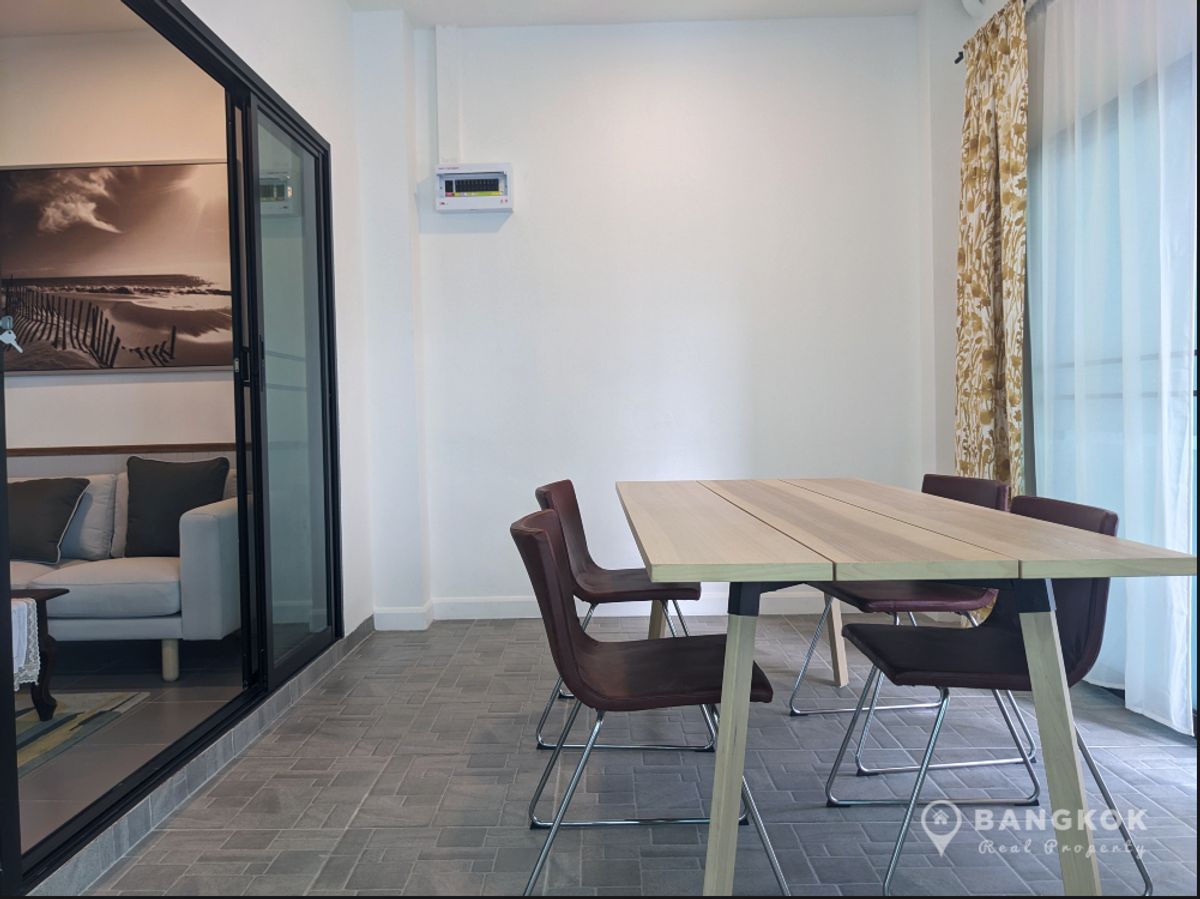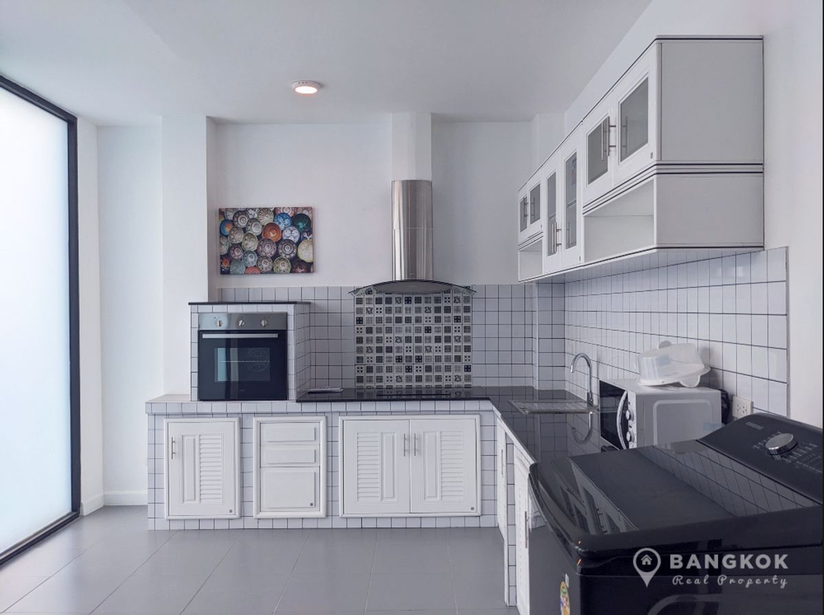 This modern, spacious 3+1 bedroom duplex apartment is available to rent ideally situated within the very popular Sammakorn Village located just off Ramkhamhaeng Road. Located near the Sammakorn Place Shopping Mall, The duplex apartment is set over 2 floors with 170 sq/m of living space. Floor 2: Large living room, separate dining room, study room with balcony, separate western kitchen with oven, guest bathroom, bedroom 2 with en-suite bathroom. Floor 3: Den / play room (or Bedroom 4), large terrace, bedroom 3 with balcony, main bathroom, bedroom 1 with en-suite bathroom. AVAILABLE: JULY 2025 - Minimum 1 year contract (12 Months or more) - 2 Months Security Deposit + 1 Month Advance Rent - Use of the facilities (Pool, Gym etc) is not included in the rent. - Cat Allowed (no Dogs) – Subject to Discussion - Non Smoking Building - Unit has 1 Car Parking Space - Sorry, No Co Agents / ไม่รับโคเอเจนย์ For more details: LINE ID: tombkkproperty https://line.me/ti/p/UcCUcpKdaL Mobile/WhatsApp: คลิกเพื่อดูเบอร์โทรติดต่อ English + Thai