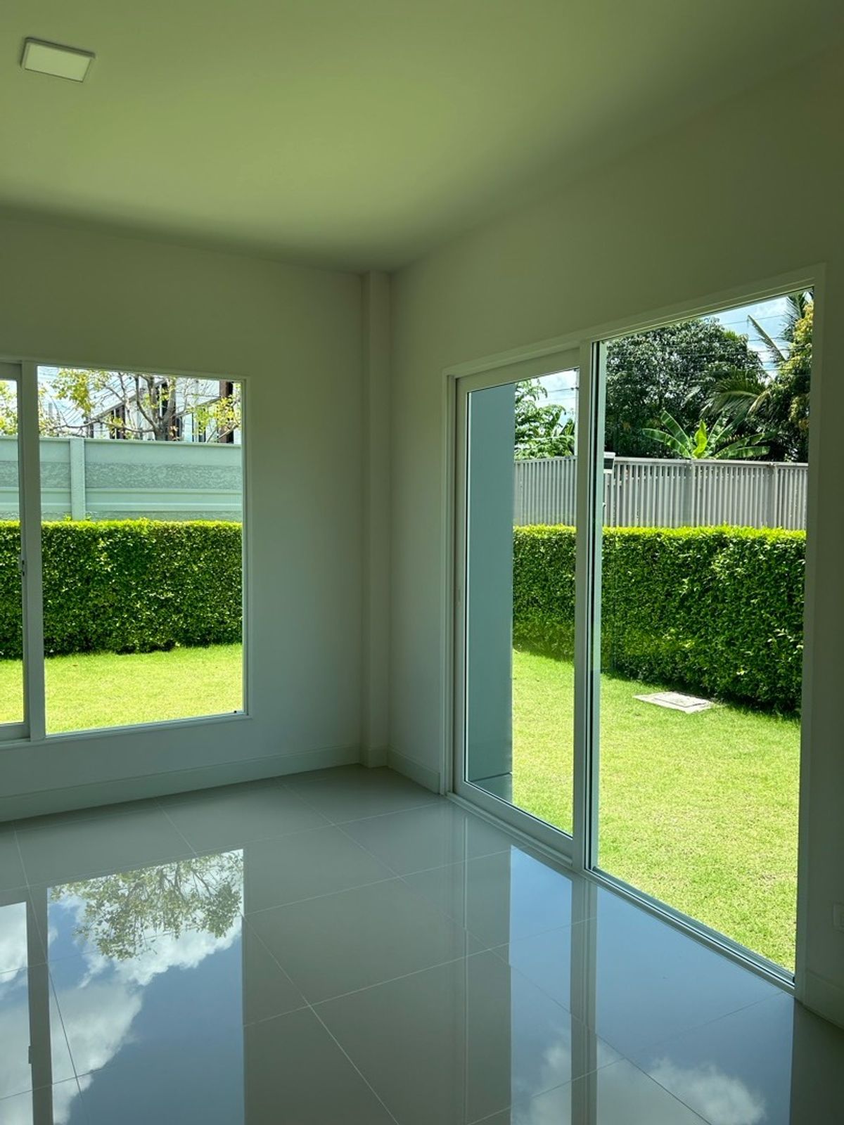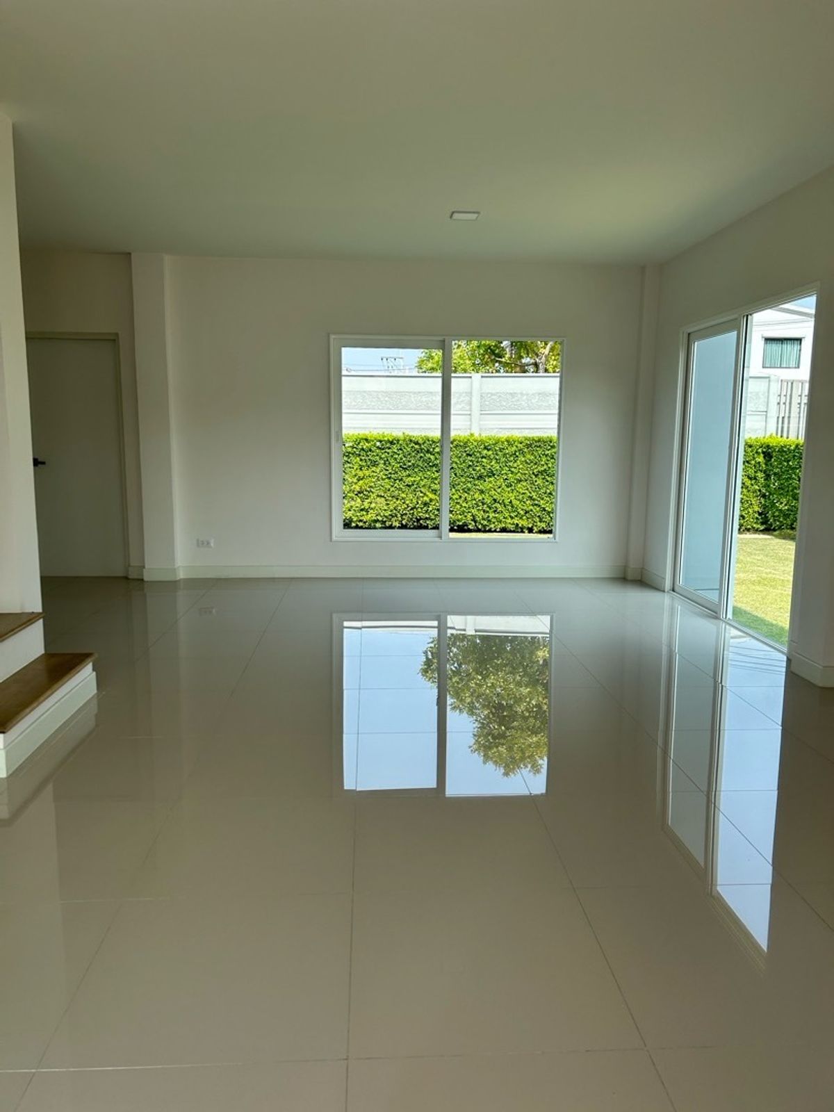 เจ้าของขายเอง บ้านมือ 1 หลังมุม เป็นบ้านใหม่ซื้อไว้แต่ไม่เคยเข้าอยู่ บ้านแฝดที่เหมือนบ้านเดี่ยว พื้นที่ขนาดใหญ่ สวนข้างบ้านและหลังบ้านขนาดใหญ่ หน้าบ้าน ข้างบ้าน หลังบ้านไม่ติดใคร ติดแค่ด้านข้างอีกฝั่ง ส่วนตัวสุดๆ มีประตูกั้นโซนทาวน์โฮมกับโซนบ้านแฝด 4 หลัง private สุดๆ ทำเลดีเข้าออกได้หลายทาง ทั้ง ถ.ราชพฤกษ์ ถ.บรมราชชนนี ถ.สิรินธร ถ.นครอินทร์ หรือ ถ.บางกรวย-ไทรน้อย ใกล้ทางด่วนศรีรัช และใกล้รถไฟฟ้า บางบำหรุเพียง 5 นาที แบบ JANETTE บ้านแฝด 2 ชั้น หน้ากว้าง 9.40 เมตร ที่ดินขนาด 59.4 ตร.ว. พื้นที่ใช้สอย 145 ตร.ม. 3 ห้องนอน 3 ห้องน้ำ 2 ที่จอดรถ ขนาดที่ดิน 59.40 ตรว. พื้นที่ใช้สอย 145 ตรม. 3 ห้องนอน 3 ห้องน้ำ 1 ห้องครัว 1 ห้องนั่งเล่น หน้าบ้านหันไปทางทิศตะวันตกเฉียงใต้ ลมเข้าตลอดทั้งวัน อายุบ้าน 2 ปี สร้างเสร็จปี 2565 ค่าส่วนกลาง 49 บาทต่อตารางวา แอร์ 3 ตัว Air Samsung 9,000 BTU Air Samsung 9,000 BTU Air Samsung 18,000 BTU กล้องวงจรปิด Digital Doorlock สิ่งอำนวยความสะดวก ระบบแอปพลิเคชั่น Smart World, กล้อง CCTV และเจ้าหน้าที่รักษาความปลอดภัย 24 ชั่วโมง สวนสาธารณะ สนามเด็กเล่น สนามบาสเก็ตบอล ขนส่งสาธารณะ * รถไฟฟ้าสายสีแดง สถานีบางบำหรุ : 3.2 กม. ศูนย์การค้า * Lotus’s นครอินทร์ : 4.2 กม. * Makro นครอินทร์ : 5.3 กม. * Central West Ville ราชพฤกษ์ : 5.4 กม. * The Crystal SB ราชพฤกษ์ : 6 กม. * The Walk ราชพฤกษ์ : 6 กม. * Central Plaza ปิ่นเกล้า : 6.9 กม. * Home Pro ราชพฤกษ์ : 7 กม. * 7-Eleven : 600 ม. * Lotus’s Go Fresh : 1 กม. * Big C Mini : 1.5 กม. * ตลาดชาวสยาม : 2.4 กม. * ตลาดครอบครัว บางกรวย : 2.5 กม. * ช่างชุ่ย : 4.5 กม. * ตลาดพระราม 5 : 9.2 กม. * Food Villa ราชพฤกษ์ : 10 กม สถานศึกษา * โรงเรียนบดินทรเดชานนทบุรี 2 กม. * รร.ประสาทวิทยานนทบุรี : 5 กม. * ม.ราชพฤกษ์ : 6.5 กม. * รร.นานาชาติร่วมฤดีราชพฤกษ์ : 7.8 กม. * รร.เขมะสิริอนุสสรณ์ : 8.4 กม. * โรงเรียนเทพศิรินทร์ นนทบุรี : 8.7 กม. * รร.สตรีนนทบุรี : 8.8 กม. * รร.เด่นหล้าพระราม 5 : 8.8 กม. * รร.เตรียมอุดมศึกษาพัฒนาการ นนทบุรี : 8.9 กม. * ม.พระจอมเกล้าพระนครเหนือฯ (KMUTNB) : 9 กม. * รร.สตรีบูรณวิทย์ : 9.2 กม. * รร.เซนต์คาเบรียล : 9.6 กม. * รร.เซนต์ฟรังซีสซาเวียร์คอนแวนต์ : 9.6 กม. * ม.สวนดุสิต : 9.6 กม. * มรภ.สวนสุนันทา : 9.6 กม. สถานพยาบาล * รพ.บางกรวย : 1.2 กม. * รพ.ตา หู คอ จมูก : 5.6 กม. * รพ.ศรีสวรรค์ ราชพฤกษ์ 4.7 กม. * รพ.เจ้าพระยา : 8.2 กม. * รพ.ศิริราช ปิยมหาราชการุณย์ SIPH 8.3 กม. * รพ.ศิริราช : 8.3 กม. * รพ.วชิระ : 8.6 กม สถานที่ราชการสำนักงาน * ที่ว่าการ อ.บางกรวย : 1.2 กม. * สำนักงานเทศบาลเมืองบางกรวย : 1.5 กม. * สำนักงานขนส่งฯ พื้นที่ 2 (สวนผัก) : 2.8 กม. * ศาลแพ่งตลิ่งชัน : 5.9 กม. * กฟผ.บางกรวย : 6.9 กม. ราคา 6,290,000 ล้านบาท ฟรีค่าใช้จ่าย ณ วันโอน สนใจสอบถามข้อมูลเพิ่มเติม หรือ นัดชมบ้านได้ที่ Line: maleezii Wechat: maleeziii