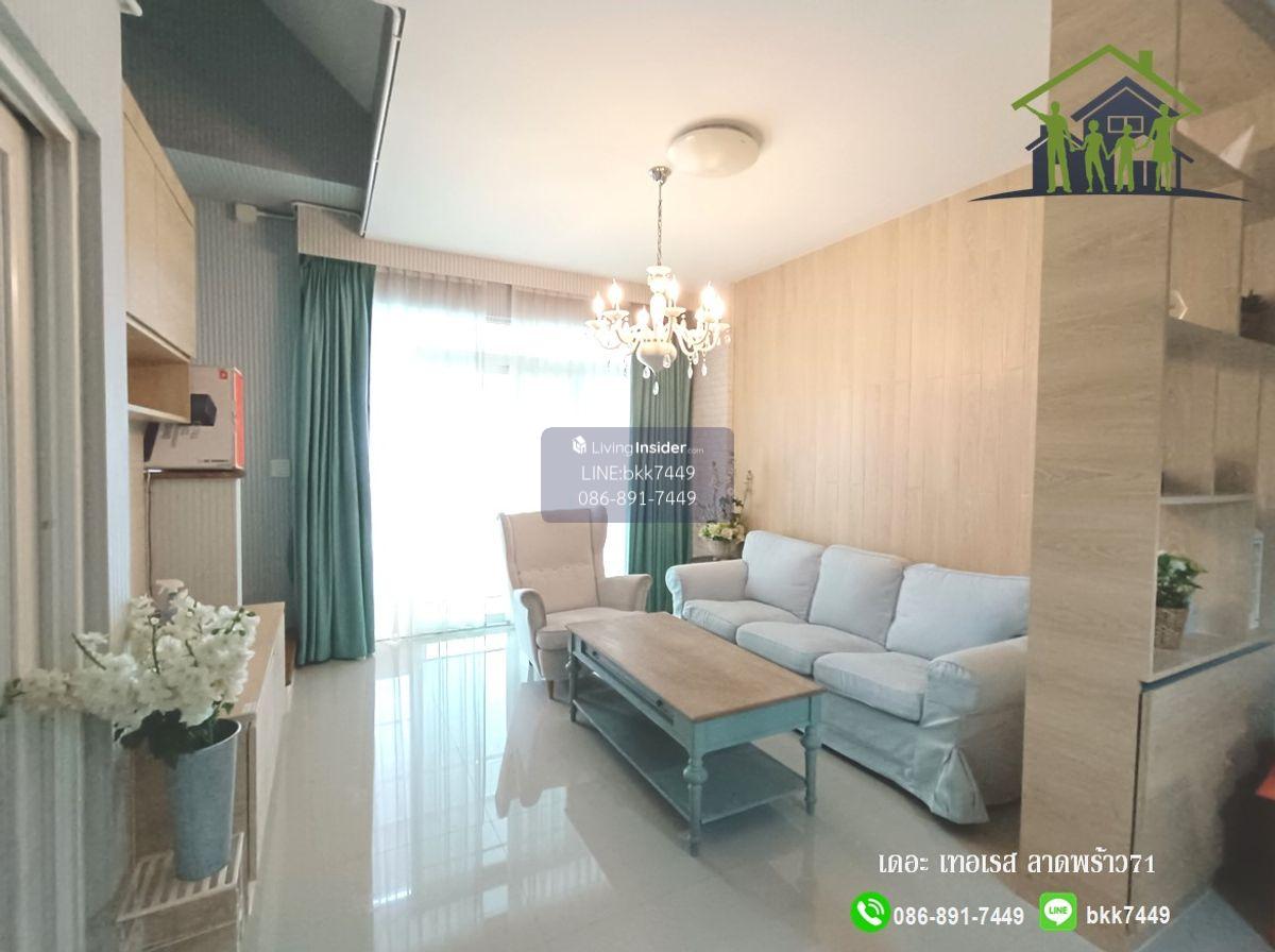 ✅✅ขายบ้านทาวน์โฮม 3 ชั้น-เดอะ เทอเรส ลาดพร้าว71 (ซ.นาคนิวาส 48 แยก14) For SALE-The Terrace Lat Phrao 71 TownHome - 4.75 ลบ. *************************************************** ท/ฮ พื้นที่ 22 ตรว. 3ชั้น 3ห้องนอน 4 ห้องน้ำ ชั้นล่าง แต่งโฮมออฟฟิต หน้าบ้านกว้าง 5 เมตร บิ้วอินทั้งหลัง ต่อเติมหลังบ้านเรียบร้อย สภาพดี พร้อมอยู่ 📌 เซ็นทรัล อีสต์วิลล์ ถ.ประดิษฐ์มนูธรรม 📌 โลตัส รามอินทรา 📌 เดอะคริสตัล เอกมัย-รามอินทรา 📌 รร.สตรีวิทยา 2 📌 สถานีรถไฟฟ้าสถานีลาดพร้าว 71 59 ซ. นาคนิวาส 48 แยก 14 แขวงลาดพร้าว ลาดพร้าว กรุงเทพมหานคร 10230 https://maps.app.goo.gl/kZ3CaLt1cYSX88Fz7 ************************************************** ราคาขาย 4.75 ลบ. -เจ้าของใจดี พร้อมจบ ☎️TEL: คลิกเพื่อดูเบอร์โทรติดต่อ ✅Line ID: bkk7449 ปล.ถ้าทักมาผ่านFB messenger แล้วไม่ตอบรบกวนแอ๊ดไลน์ ขอบคุณครับ รับฝากขาย-เช่า บ้าน และคอนโด โดยนายหน้ามืออาชีพ และมีประสบการณ์