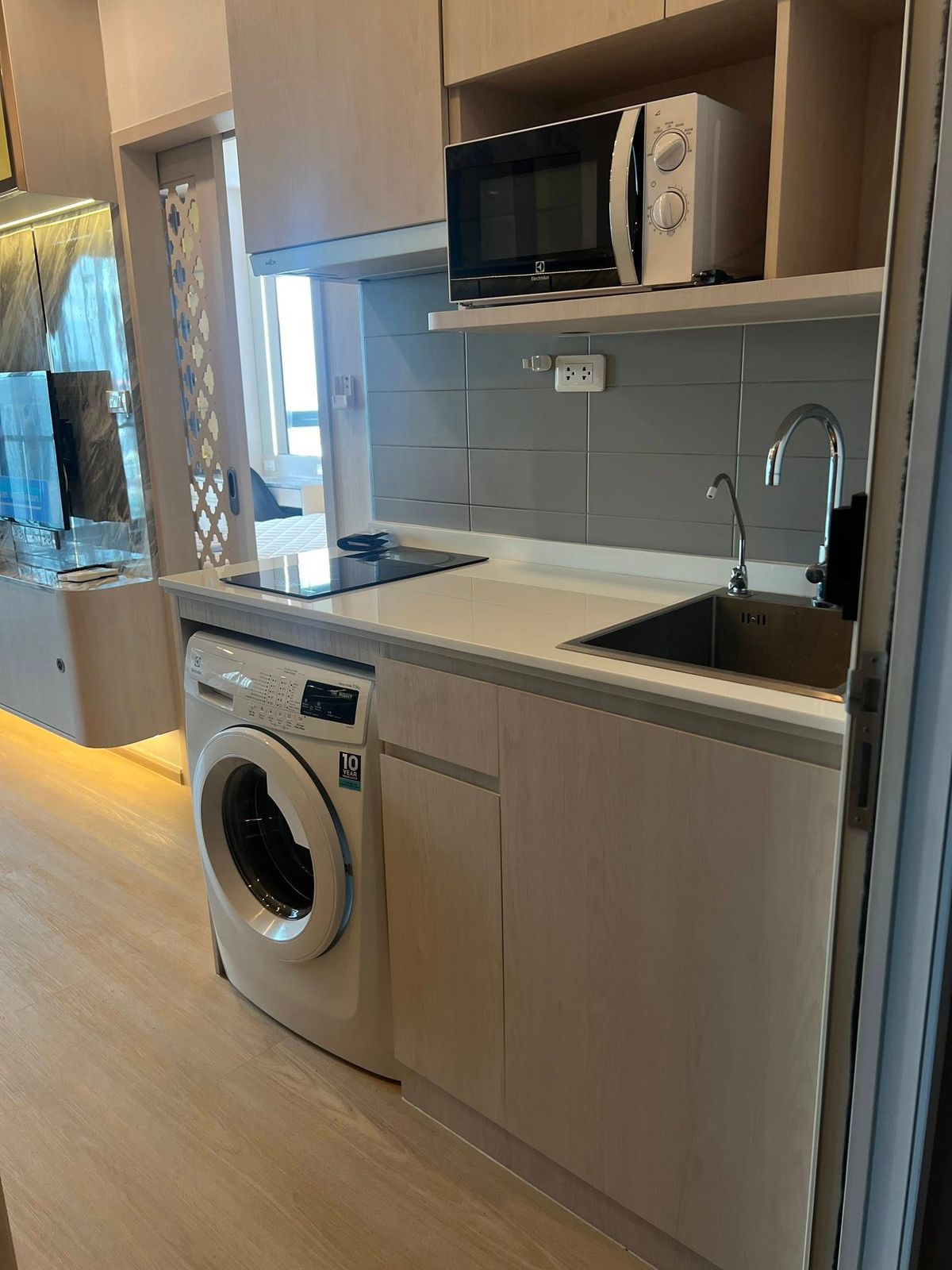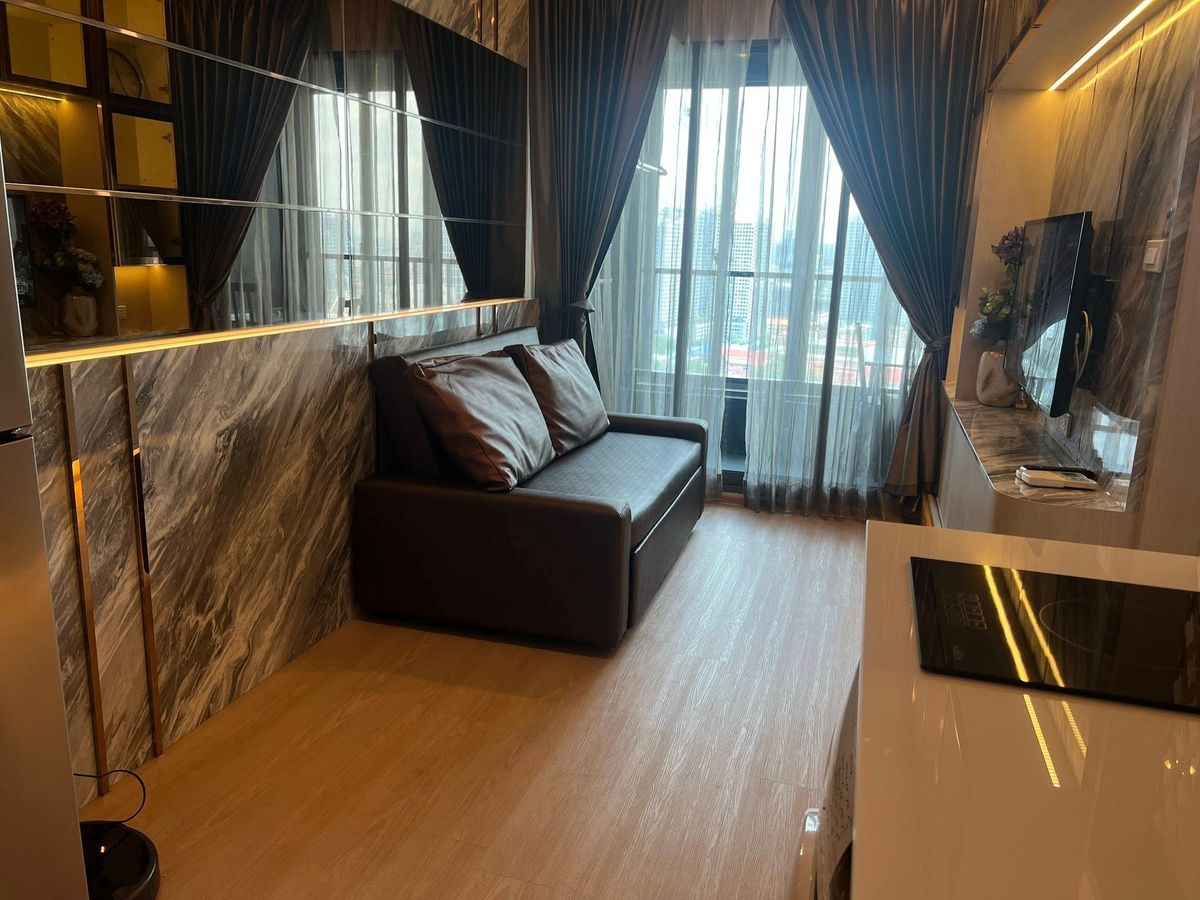 1 ห้องนอน 1 ห้องน้ำ ขนาด 30.5 ตรม. ชั้น 27 เฟอร์นิเจอร์และเครื่องใช้ไฟฟ้าครบ - เตียงนอนพร้อมที่นอน 5 ฟุต - แอร์ 2 - ทีวี 2 - ตู้เย็น - เครื่องซักผ้า - เครื่องทำน้ำอุ่น - ไมโครเวฟ - เตาไฟฟ้าและเครื่องด