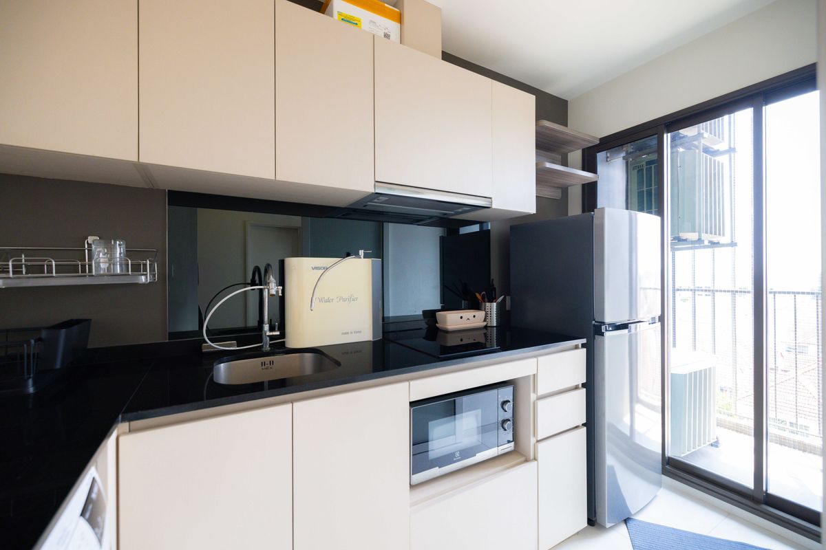 ขายคอนโด แชมเบอร์ส เฌอ รัชดา-รามอินทรา 43.37 ตร.ม. ใกล้ BTS วงแหวนรามอินทรา จุดเด่นที่น่าสนใจ - ครัวแยกพร้อมอุปกรณ์ครบ / เตาไฟฟ้า 2 หัว ไม่เคยผ่านการใช้งาน + ที่ดูดควัน - มีเครื่องซักผ้าในห้อง - แอร์ 3 ตัว ครอบคลุมทุกพื้นที่ - อินเทอร์เน็ตความเร็วสูง - เฟอร์นิเจอร์ครบ พร้อมเข้าอยู่หรือปล่อยเช่าต่อได้ทันที * ติดตั้งกระจกบริเวณหัวเตียงนอน และห้องครัว เพิ่มมิติให้การใช้งาน ทำให้ห้องดูกว้างขึ้น ข้อมูลสินทรัพย์ รหัสสินทรัพย์ L082950 ประเภทอสังหา ฯ คอนโด พื้นที่ใช้สอย 43.37 ตร.ม. อยู่ชั้น 6 ห้องนอน:1, ห้องน้ำ:1, ห้องรับแขก: 1, ห้องครัว: 1 เครื่องปรับอากาศ 3 เครื่อง สิ่งอำนวยความสะดวก - สระว่ายน้ำระบบเกลือ - ฟิตเนสวิวสวน - ห้องอ่านหนังสือ Co-Working Space - ระบบรักษาความปลอดภัย 24 ชม. - digital door lock - กล้องวงจรปิด - ที่จอดรถในอาคาร - ห้องประชุมอเนกประสงค์ สถานที่ใกล้เคียง - ห้างแฟชั่นไอส์แลนด์ / เดอะพรอมานาด - โรงพยาบาลสินแพทย์ / พญาไท นวมินทร์ - ทางด่วนฉลองรัช - รถไฟฟ้าสายสีชมพู สถานีวงแหวนรามอินทรา