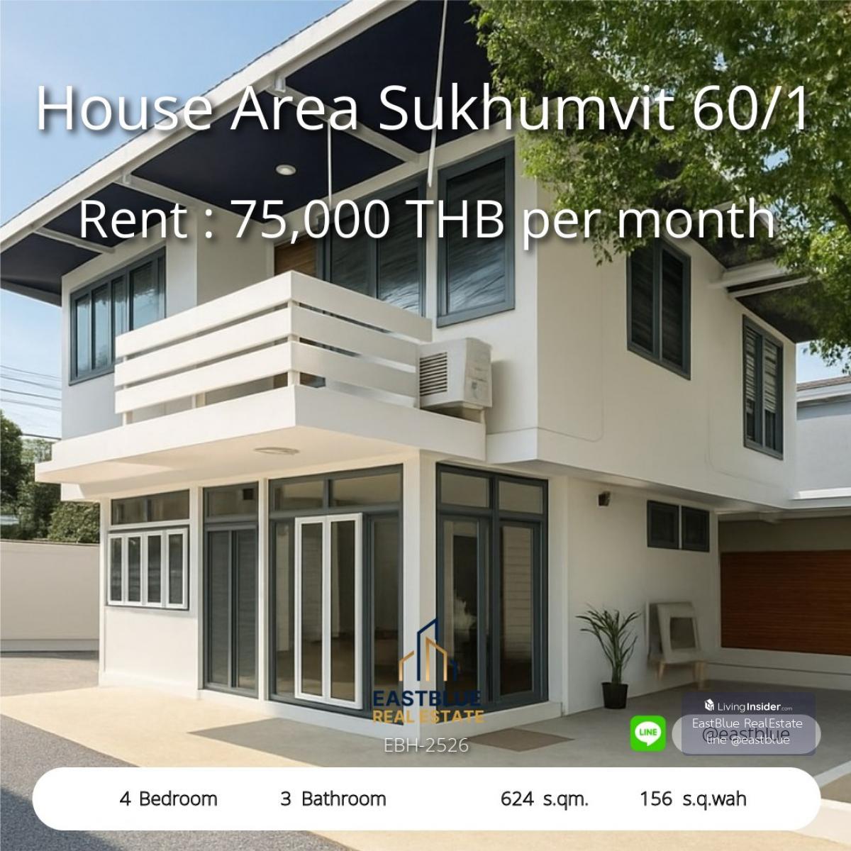 Project : House Area Sukhumvit 60/1 ID : EBH-2526 4 Bed 3 Baht House Area :624 sqm Land Area :156 sq.wah Rental Price : 75,000 THB per month Selling Price : THB . ิติดต่อ Contact, Appointment for viewing. call: คลิกเพื่อดูเบอร์โทรติดต่อ WhatsApp: คลิกเพื่อดูเบอร์โทรติดต่อ - Eastblue เราคือทีมตัวแทนอสังหาริมทรัพย์มืออาชีพ ที่ได้รับความไว้วางใจด้วยยอดขายรวมมูลค่าหลายพันล้านบาท พร้อมทีมที่ปรึกษาผู้เชี่ยวชาญด้านการซื้อ ขาย และการลงทุนในอสังหาริมทรัพย์ . ดูทรัพย์อื่นๆมากกว่า 50,000 รายการ ,explore over 50,000 listings on our website: https://www.eastblueth.com ❗️❗️not accept co-agent❗️❗️ . House Area Sukhumvit 60/1 • 4 ห้องนอน 3 ห้องน้ำ 2 ที่จอดรถ • พื้นที่ใช้สอย 624 ตร.ม. ขนาดที่ดิน 156 ตร.วา จุดเด่นโครงการ • บ้านในโครงการเงียบสงบ ร่มรื่น ด้วยพื้นที่กว้างขวาง • ระบบรักษาความปลอดภัย 24 ชั่วโมง • สวนส่วนกลางและพื้นที่พักผ่อน สิ่งอำนวยความสะดวก • สนามเด็กเล่น • ฟิตเนส • ที่จอดรถสะดวกสบาย สถานที่ใกล้เคียง • โรงพยาบาลบางนา 2 (4.5 กม.) • โรงเรียนนานาชาติบางกอกพัฒนา (5.0 กม.) • เซ็นทรัล บางนา (6.0 กม.) • เมกา บางนา (7.5 กม.) • สวนหลวง ร.9 (9.0 กม.) ราคาเช่า 75,000 บาท/เดือน #บ้านมือสอง #เช่าบ้านสุขุมวิท #HouseAreaSukhumvit60