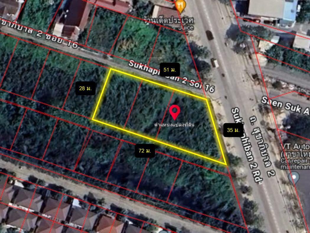 ขาย ที่ดิน ติดถนนสุขาภิบาล 2 ขนาด 432 ตรว เหมาะทำการค้า DD :: จุดเด่น :: - ทำเลดีมาก อยู่ริมถนนใหญ่ ถนนกว้าง 4 เลน - คนพลุกพล่าน รถผ่านไปมาตลอดเวลา เหมาะทำการค้า :: รายละเอียด :: - ขนาด 432 ตร.วา - ถม 1 เมตร - ผังเมืองสีเหลือง ย.3-47 - ที่ดินกว้าง 35 เมตร ลึก 72 เมตร :: สถานที่ใกล้เคียง :: - ติดถนนสุขาภิบาล 2 ราคา: 51,840,000 บาท (ราคา 120,000 บาท / ตารางวา) - ค่าธรรมเนียมการโอน 2% คนละครึ่ง - ภาษีทั้งหมดเจ้าของรับผิดชอบ สนใจติดต่อ: Agent คลิกเพื่อดูเบอร์โทรติดต่อ Line: @bkk66 ต้องใส่ @ ข้างหน้าด้วยครับ (งดนายหน้า) _____________________________________________ หาที่ดิน...เหนื่อยไหม? ❌ เสียเวลาดูเป็นร้อยแปลง? ❌ เสี่ยงเรื่องผังเมือง กฎหมาย? ❌ ไม่แน่ใจว่าราคาเหมาะสม? ❌ เจรจาไม่เก่ง กลัวได้ดีลแย่ๆ หยุดหา...แล้วให้เราจัดการให้ บริการหาที่ดินโดยผู้เชี่ยวชาญ ✅ ช่วยวิเคราะห์ราคาตลาดที่ดินให้คุณ ✅ ตรวจสอบผังเมืองและข้อกฎหมายเบื้องต้น ✅ คัดกรองแปลงที่ดีที่สุด มาให้คุณเลือก ✅ ช่วยเจรจาต่อรองเพื่อผลประโยชน์ของคุณ บริการจัดหาที่ดิน ฟรี ! ไม่มีค่าใช้จ่ายใดๆทั้งสิ้น ดูแลครบทุกขั้นตอน โดยทีมงานมืออาชีพ สนใจติดต่อ Line: @BKK66