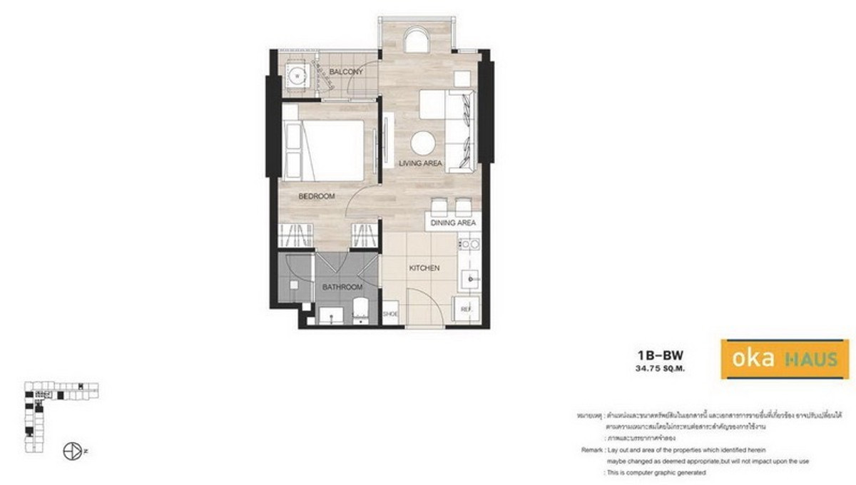 พื้นที่ใช้สอย 34.93 ตร.ม.