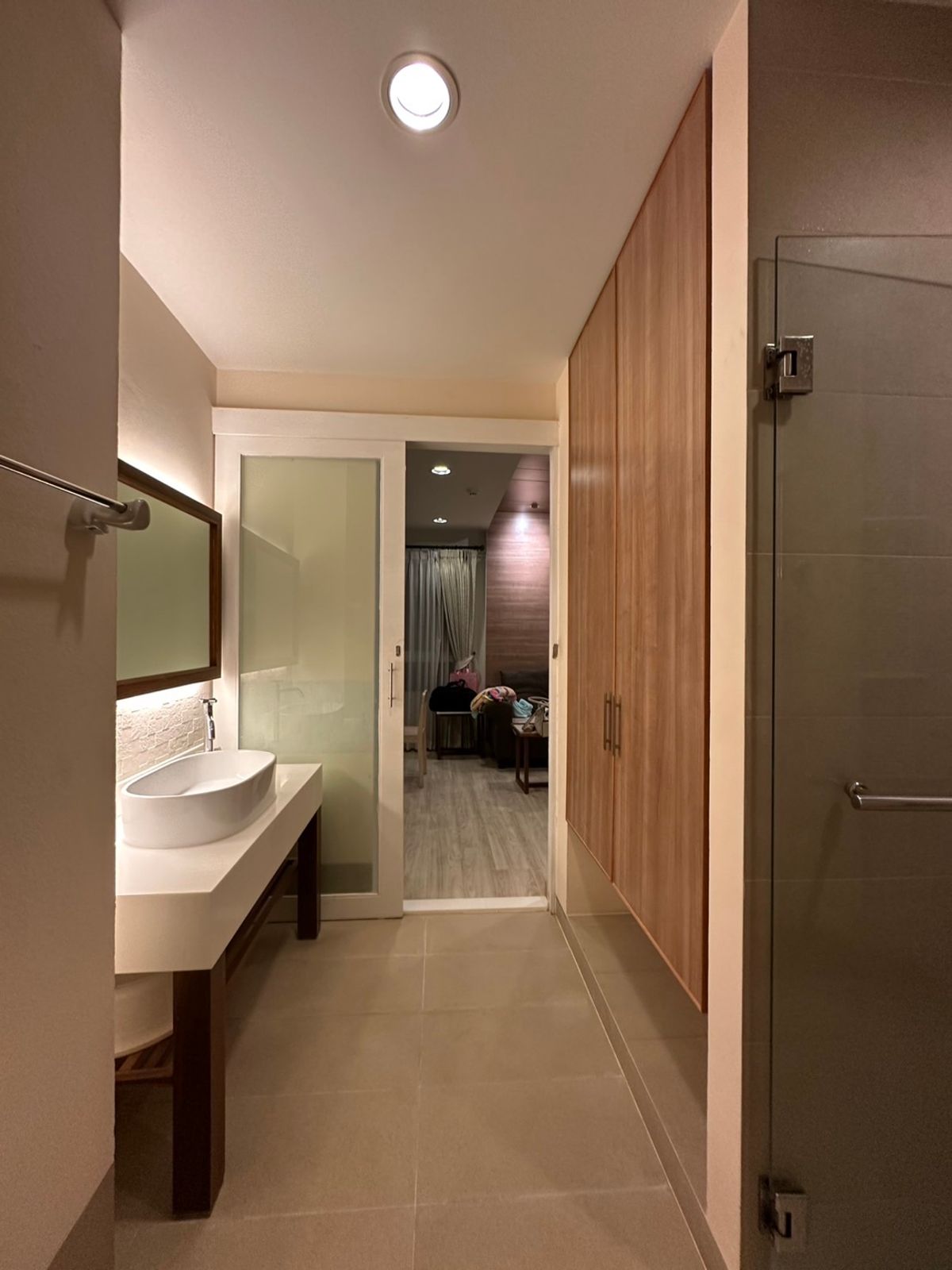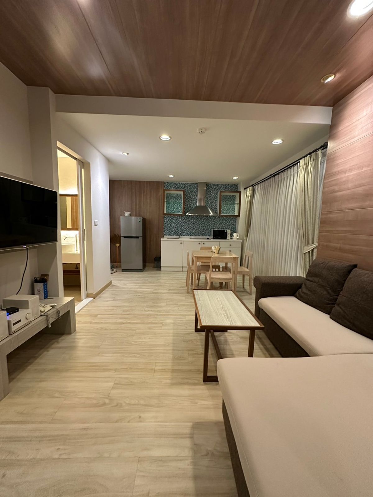 โครงการ (Project): The Sea ติดหาดสามร้อยยอด (The Sea, near Sam Roi Yot Beach) ขนาด (Size): 65 ตร.ม. (65 sq.m.) ห้อง (Rooms): 2 ห้องนอน (2 bedrooms) 1 ห้องน้ำ (1 bathroom) 1 ห้องนั่งเล่น (1 living room