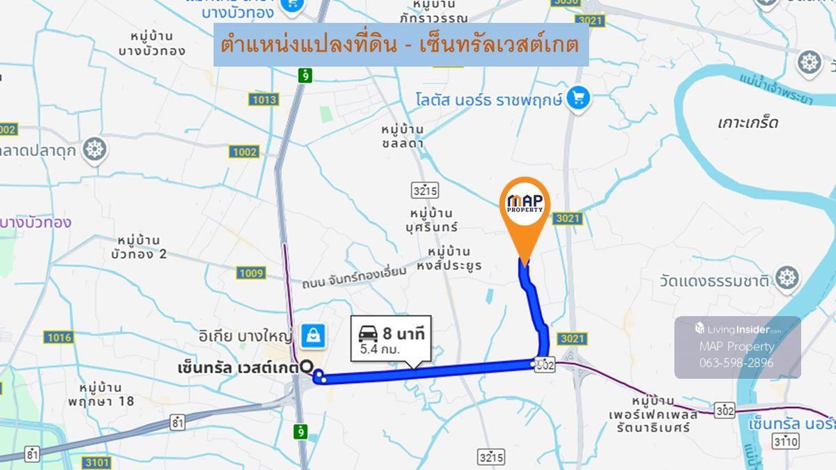 แปลงที่ดิน 2-2-37 ไร่ ซอยโยธาพัฒนา ตำบลบางรักใหญ่ อำเภอบางบัวทอง จังหวัดนนทบุรี -ขนาดที่ดิน กว้าง 53 เมตร ยาว 80 เมตร ที่ดินถมแล้วสูงกว่าถนน 1 เมตร เหมาะกับทำธุรกิจส่วนตัว หรือที่อยู่อาศัย - มีกำแพงกันดิน 4 ด้าน ล้อมรอบ -ด้านหลังที่ดินติดคลองบางรักใหญ่ -มีถนนทางเข้าที่ดินโดยเฉพาะ กว้าง 4 เมตร (โฉนดทางเข้าเจ้าของเดียวกันกับที่ดินด้านใน) - ที่ดินมีน้ำประปาใช้ มีปลูกต้นไม้ มีคนดูแลที่ดินอย่างดี ไม่รก สามารถต่อยอดทำธุรกิจ หรือที่อยู่อาศัยได้เลย -ในที่ดิน มีบ้านพักหลังเล็ก พร้อมห้องน้ำในตัว (ทั้งหลังปูกระเบื้อง) สำหรับไว้พักดูแลที่ดิน การเดินทาง: -ห่างจาก MRT บางรักใหญ่ 1.8 กม. -ห่างจาก เซ็นทรัลเวสต์เกต 5.4 กม. -ห่างจากศูนย์ราชการนนทบุรี 9.5 กม. สนใจติดต่อ: คุณเจี๊ยบ 093.535.5593