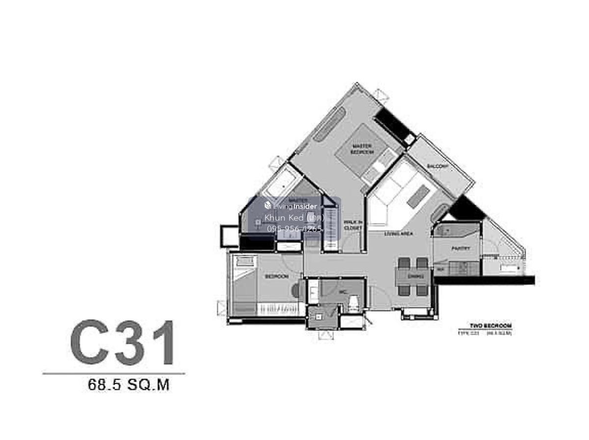 พื้นที่ใช้สอย 68.50 ตร.ม.