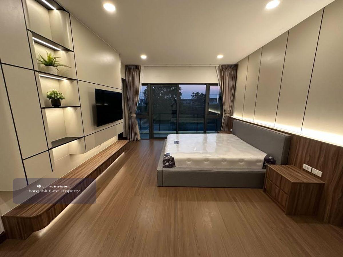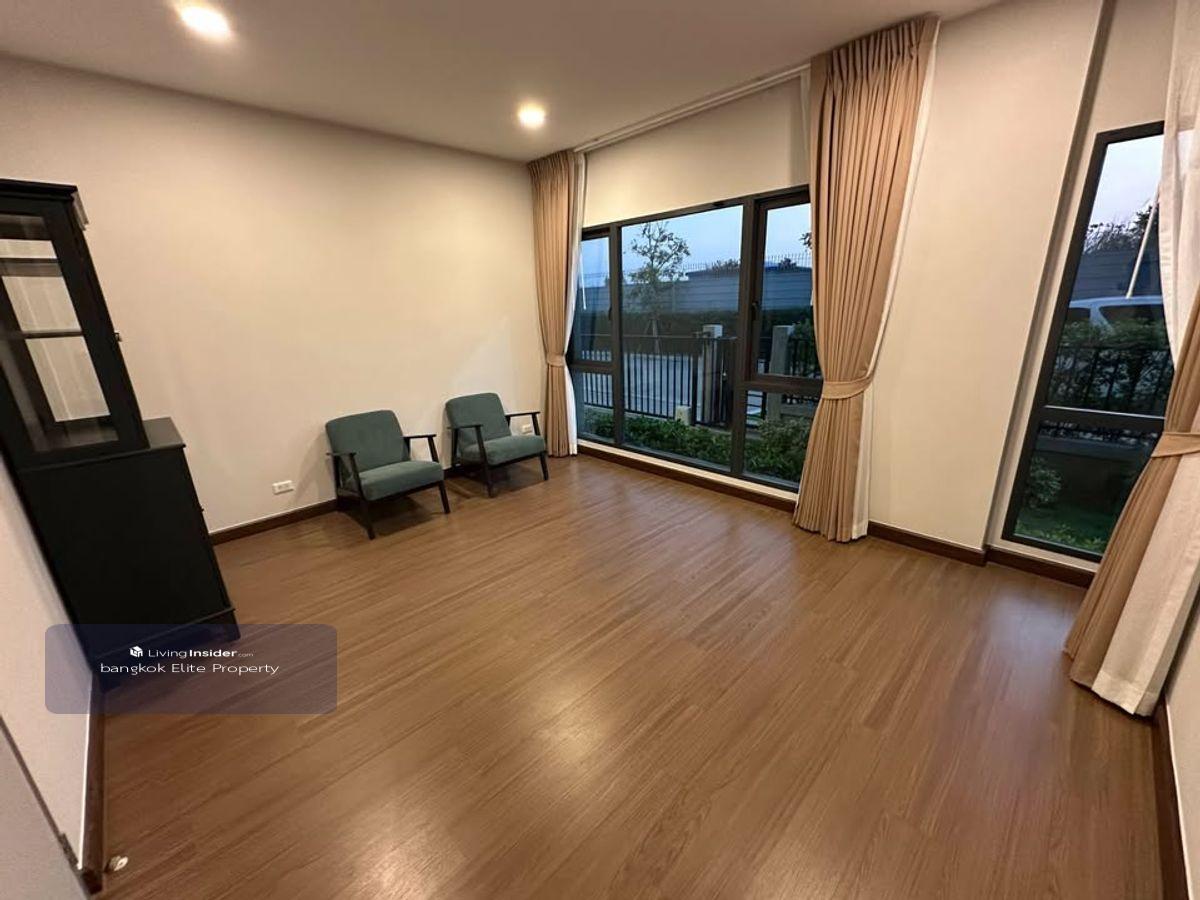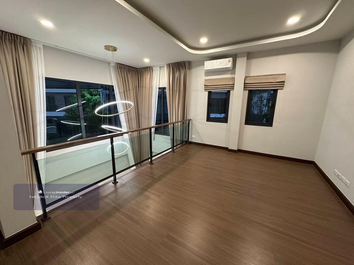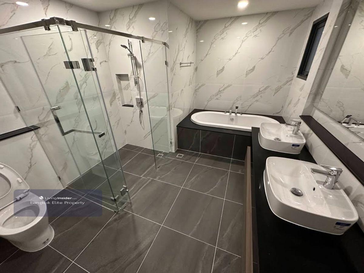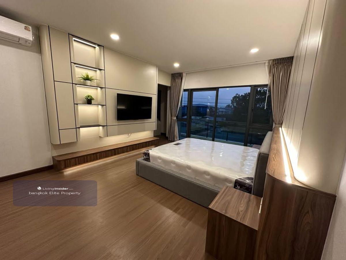 FOR RENT : THE CITY BANGNA New Luxurious House ONLY 1km from Mega Bangna (Never lived in before). This house is situated on a large corner plot with significant space between neighboring houses. There is a large garden space next to the living room. Details: - 4 bedrooms, 5 bathrooms - 3 car parking spaces - 2 living rooms with double volume space - 1 maid room with private bathroom - Living space: 313 square meters - Land area: 80 square wah - Fully equipped kitchen with induction stove, hood, side-by-side fridge, microwave, and large washing machine ------------------------------- RENT : 200,000 Baht ------------------------------- For more information please contact Khun Big Call : คลิกเพื่อดูเบอร์โทรติดต่อ Line : big คลิกเพื่อดูเบอร์โทรติดต่อ