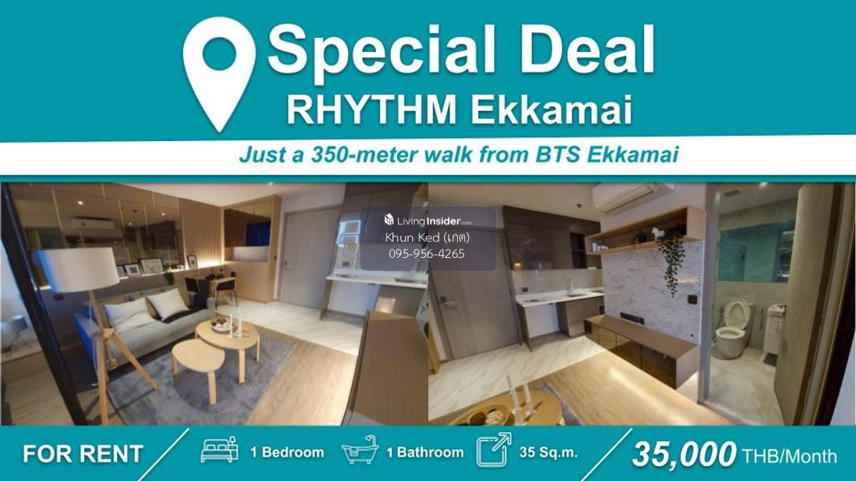 คอนโดหรูในทำเลที่ดี เดินทางสะดวก ใกล้แหล่งไลฟ์สไตล์ และมีสิ่งอำนวยความสะดวกครบครัน RHYTHM Ekkamai ㅡ 1 ห้องนอน 1 ห้องน้ำ ㅡ พื้นที่ 35 ตรม. เฟอร์นิเจอร์+เครื่องใช้ไฟฟ้าครบครัน ราคาเช่า : 35,000 บาท/เดือ