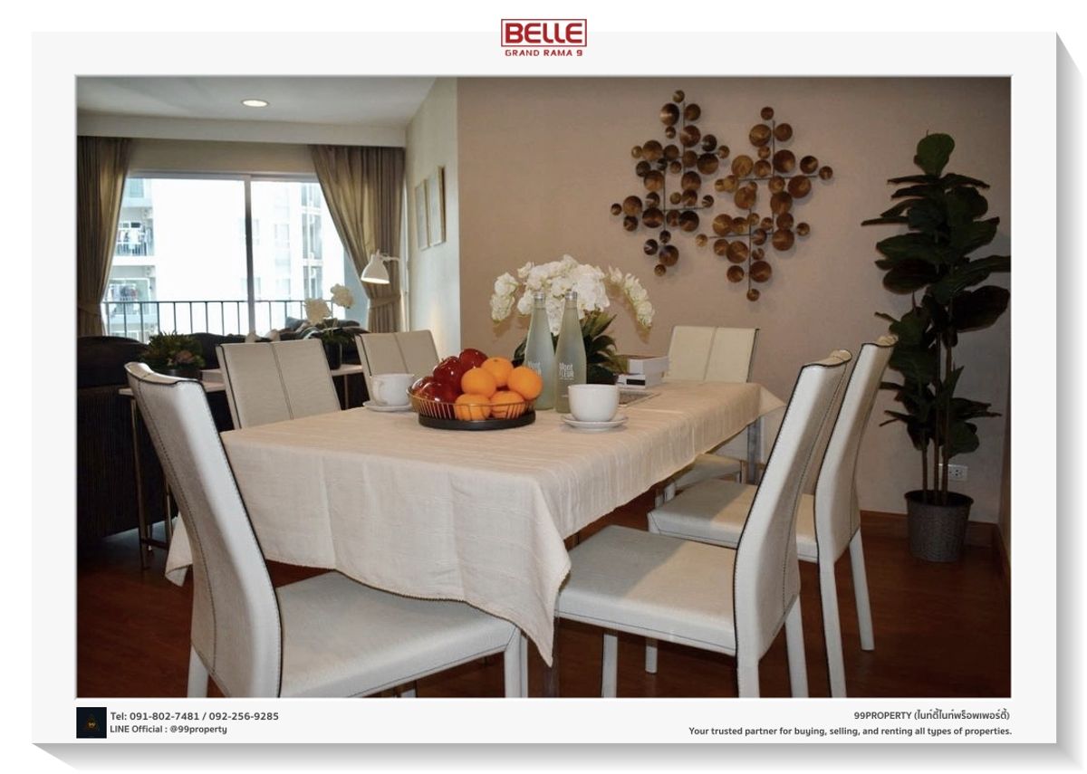 [FOR RENT] Belle Grand Rama 9 [ให้เช่า] เบลล์ แกรนด์ พระราม 9 • Type: 2 bedroom , 2 bathroom • Size: 96 sqm. • Floor: 15+ • Rental Price: 45,000 THB/month. Will Available End of November 🚇Public Transport : Close to MRT Rama 9. Facilities • Lobby • swimming pool • Garden and seating area • playground • fitness room • closed-circuit camera • Access Card Control • Security guard 24 hrs. Nearby Places • CentralPlaza Grand Rama 9. • Fortune Town • Lotus Fortune Town • Singha Complex • Ruamsap Market • Grammy Building • Korean Town • Terminal 21 • EmQuartier • Emporium • Central Embassy • Big C Ratchadamri • Central Chidlom • Central world • Gaysorn Village • Erawan Plaza • Siam Paragon • Siam Center • Siam Square One • Siam Discovery ___________________________________________ 🌐 Contact us for inquiries or to schedule a viewing (Ref:99-18752) 🔰 Contact: Ms. PENNAPA JUNPOANG (ฝ้าย) 🔰 Tel: คลิกเพื่อดูเบอร์โทรติดต่อ / คลิกเพื่อดูเบอร์โทรติดต่อ 🔰 LINE Official: 👉 @99property (with @ in front) https://lin.ee/5XghtIk 🔰 whatsapp : คลิกเพื่อดูเบอร์โทรติดต่อ 🔰 FB.99PROPERTY ( บริการรับฝากขาย-เช่า อสังหาฯ ) 🔰 ชมโครงการอื่นเพิ่มเติม https://www.facebook.com/99PropertyCondo/
