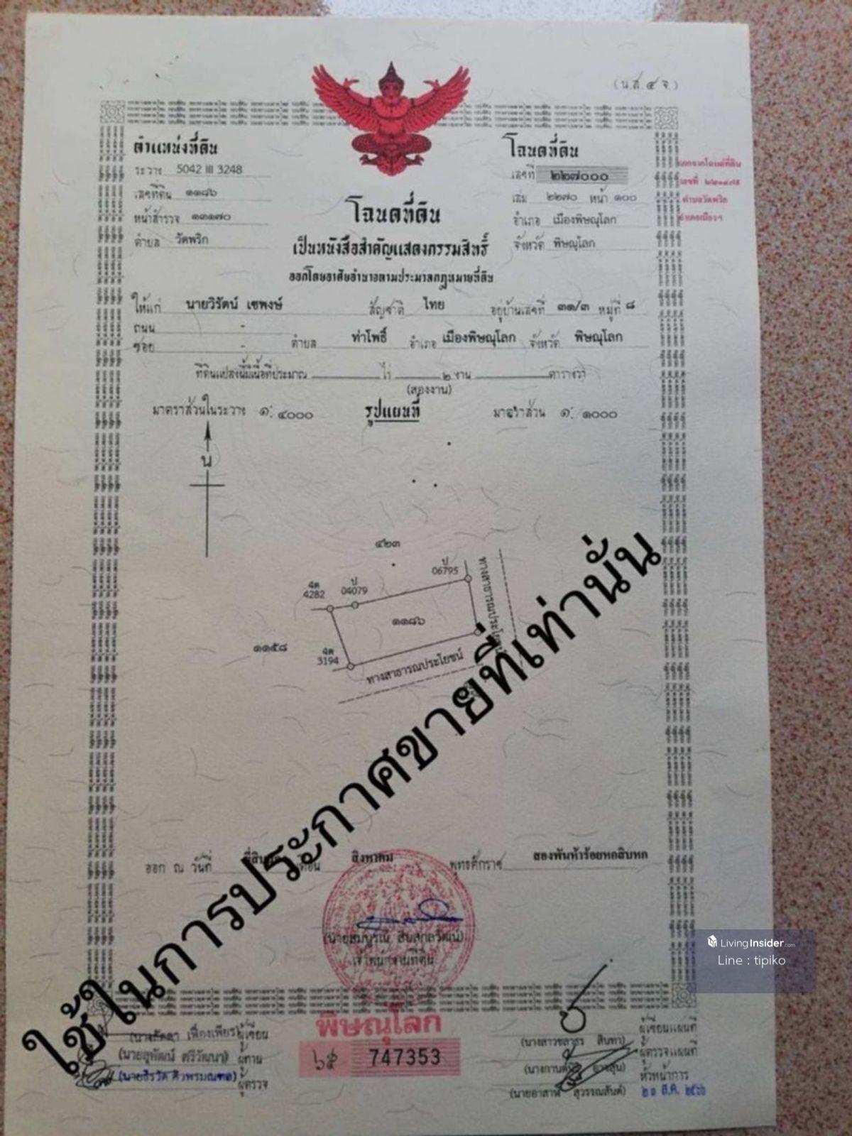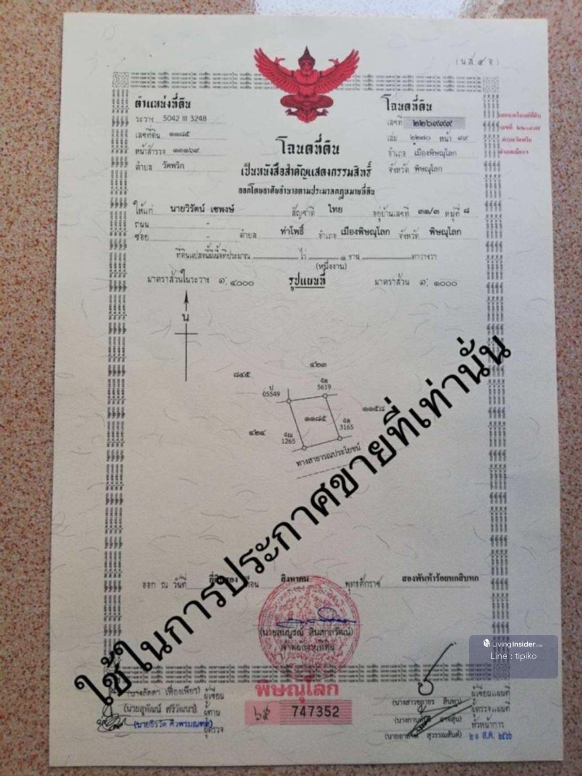 ขายที่ดิน 1ไร่ ติดลำน้ำน่าน เมืองพิษณุโลก
